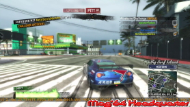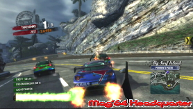 Positiv das ihr hier alle früheren Erweiterungen des Spiels vorfindet. Sprich alle Inhalte, die es seinerzeit nach und nach gab, können hier genutzt werden. Zu Beginn des Spiels steht einzig die Wahl des Startortes an. Bedeutet hier dass ihr wahlweise in Paradise City oder Big Surf Island startet. Keine Sorge, das sind keine getrennten Bereiche, sondern insgesamt wartet eine große Gesamtwelt auf euch. Paradise City ist dabei um einiges umfangreicher, während Big Surf Island eher eine komprimierte Action Insel darstellt, die über eine Brücke miteinander verbunden sind. Beiden gemein ist das gelungene Open World Feeling. All Straßen und Wege können benutzt werden. Einzig Aussteigen und in Häuser gehen, geht hier nicht. ;-)) Ansonsten steht das Wort Freiheit ganz oben auf der Haben Liste der Rennaction. Gestartet wird in der Regel mit einem der verfügbaren Fahrzeuge. Über 140 warten im Spiel gefunden zu werden und unterscheiden sich in alle möglichen Typen und Klassen. Selbst Bikes, Polizeifahrzeuge oder Formel Fahrzeuge warten auf euch. Viele Klassiker erhöhen zudem schon den Bezug zur Rennaction. Hier ist echt für jeden was dabei. Alle Fahrzeuge besitzen spezielle Werte und eigenen sich daher später für die verschiedenen Events mal mehr und mal weniger gut. Leider kann man sie nicht verändern, wenn man mal von der Lackierung absieht. Sprich entweder man kommt mit der Kiste klar oder probiert einfach die nächste. Das Open World Feeling kommt dem entgegen und man verfährt einiges an Stunden nur um Autos zu testen und sich eine halbwegs passable Streckenkenntnis anzueignen.