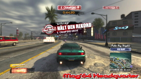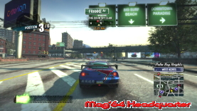 Nennt man wohl Arcade in Reinkultur, man schwingt sich hinter das Steuer eine Boliden und macht die Gegend unsicher. Unter äußerst stimmiger Mucke erwartet euch das Spiel mit der Online Anmeldung. Ihr solltet auch einen EA Account besitzen, um euch jederzeit mit den EA Servern zu verbinden und damit fremde Spieler und Daten in euer Game zu lassen. Und natürlich raus. ;-) Ansonsten fahrt ihr gänzlich allein durch die Stadtlocations. Dementsprechend ist auch die Menüführung im Spiel etwas wild. So das typische Hauptmenü samt Spielmodi gibt es hier nicht. Es ist halt gefühlt alles Eins. Oder besser gesagt, einmal in der Stadt angekommen, habt ihr Zugriff auf alle Inhalte per Tastendruck. So könnt ihr zum Start eigentlich nur wählen, wo ihr in der Spiellocation starten wollt und welches Fahrzeug ihr als Erstes zu eurem Favoriten erkoren habt. Optionen in dem Sinne findet man ebenfalls später im Spiel und kann so z.B. die Tageszeit wählen, die Tipps Ein- und Ausschalten, sowie die Y-Achse umkehren. Mehr ist es eigentlich zu Beginn auch nicht. Alles andere ergibt sich dann wirklich erst im eigentlichen Spiel. Dann wollen wir mal den Motor starten und die Gegend unsicher machen.