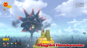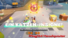 Der Rückzug von Bowser in seinen schwebenden Schleimpanzer ist nicht von langer dauer. Schade, da haben wir uns zu früh gefreut. Nach einer gewissen Spielzeit schlägt nämlich das Wetter um und der Schurke kann sich befreien. Nun gilt es schnellstmöglich eine nahegelegene Katzeninsignie einzusammeln, damit der Shine (Glanz) ihn wieder vertreibt. Doch was tun, wenn keine neue Insignie in der Nähe ist? Dann habt ihr hoffentlich genug Ausdauer bis Bowser wieder verschwindet oder aber ihr habt bereits die Riesenglocke auf der jeweiligen Inselgruppe freigeschaltet. Wenn dem so ist, dann verwandelt ihr euch damit in Riesen-Katzen-Mario und könnt nun direkt im 1:1 Battle gegen Bowser antreten - Let's get ready 2 rumble!