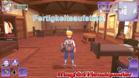 Zeittechnisch kann man sagen, dass eine Sekunde realer Zeit ungefähr 1 Minute Spielzeit entspricht. Ein Thema über das man wieder trefflich streiten kann. Denn auch hier gibt es beide Extreme. Mal vergeht die Zeit für all seine Vorhaben zu schnell, ein anderes Mal wünscht man sich einen Zeitraffer. Beginnen tut ein Tag im Normalfall 6:00 Uhr. Gespeichert wird im Spiel an festen Stellen im Spiel. Positiv das dies nicht mehr nur am eigenen Bett funktioniert. Im Spielverlauf haben die Entwickler nun auch die großen Dungeons und selbst die Boss Gegner mit Speicherplätzen gesegnet. Ihr seid auch nicht nur auf einen festgelegt und könnt somit mehrere anlegen. Sehr gelungen ist einmal mehr das Reise Feature, das auch der 5er wieder mitbringt. Denn der Charakter verfügt hier über eine spezielle Fähigkeit, mit der er sich von überall her nach Hause, zu bestimmten Örtlichkeiten in der Stadt oder direkt an den Dungeon Eingang beamen kann. So spart man sehr oft nicht nur reichlich Wege und damit Zeit, sondern auch Ladezeiten. Die Zeit übrigens kann man hier jederzeit per Pausenmenü anhalten und auch das Nutzen eines Werkzeugs oder Items per Menü stoppt das Spiel in diesem Moment. Das Pausenmenü selber ist sehr ausladend und bietet euch reichlich Gelegenheit Dinge anzupassen, oder einfach nur zu begutachten. Allein die Aufteilung ist an sich sehr schön gemacht und zeigt auch schnell einige der wichtigen Feature im Spiel. Was mir sofort gefallen hat, war der sehr große eigene Rucksack, den man zudem 2x im Spiel aufwerten kann. Auch wenn man hinten raus durchaus mal an die Grenzen stößt. In der Form ist er mehr als ausreichend. Innerhalb des eigenen Hauses gibt es zudem noch erweiterbare Kisten und Lager, so dass man sich bei diesem Thema keinerlei Gedanken machen muss. Dazu habt Ihr in den Menus neben den ganz wichtigen Charakter Eigenschaften, auch wieder Bestandteile zu den eigenen Monstern und natürlich auch zum Thema Frauen. Denn auch hier könnt Ihr natürlich wieder unter die Haube kommen. ;-) Welches Mädel der Geschichte euch wie sehr zugetan ist, das kann man hier ebenfalls jederzeit nachvollziehen. Dazu der große Bereich Ausrüstung. Im 5er könnt ihr endlich mal mehr Rüsten als nur eine Waffe und einen Ring. Klamotten, Rüstungen, Hüte oder Schuhe spielen hier eine Rolle. Grundlage des Spielsystems sind wie schon erwähnt 2 Dinge, die Farmarbeit und das Thema Kämpfen samt Monsterfeature. Dafür existiert im Pausenmenu auch der wichtigste Übersichtsbildschirm. Hier hat man links zunächst alles rund um den Helden selber. Angefangen bei seinem eigenen Level, Werten für RPG-typische Dinge wie Angriff oder Verteidigung, bis hin zum Thema Magie. Einen Bildschirm weiter findet man Balkenanzeigen samt Levelzahl für alle möglichen Fähigkeiten, die der Held im Spiel erlernen kann. Und hier trumpft der Titel immens auf. Bei allem was ihr im Spiel tut, gibt es Erfahrungspunkte. Egal ob das mit dem Thema Kämpfen zu tun hat, oder der Gartenarbeit.