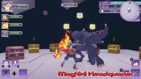 Hier haben die Entwickler etwas zu viel des Guten in Sachen Wartezeit eingebaut. Sprich ihr findet früh sehr gute Rezepte, die man auf lange Zeit gar nicht nutzen kann und ewig darauf wartet. Wer jetzt denkt das wars, ein bisschen Kämpfen und Leveln, der wird erneut angenehm überrascht. Denn relativ schnell erhaltet ihr als SEED Mitarbeiter die Fähigkeit Monster zu fangen. Dazu ist es nun möglich im Dungeon theoretisch jedes Monster zu zähmen. Statt mit dem Schwert drauf zu hauen, kann man es dazu bringen sich euch anzuschließen. Dazu müsst Ihr nun beim Zimmermann eine Scheune gekauft haben, die allein schon in der Grundausstattung 10 Monster aufnehmen kann. Und wie sollte es anders sein auch reichlich ausbaufähig ist. Ein gezähmtes Monster wandert in diese Scheune und kann nun verschiedene Aufgaben übernehmen. Simpelste Variante ist nun das Harvest Moon Gegenstück. Wichtiger Aspekt ist die Hilfe bei der Farmarbeit. Bestimmte Monster übernehmen auch Arbeiten, sofern sie ebenfalls ein bestimmtes "Liebeslevel" erreicht haben. Wichtigster Punkt und eine echter Tie-Breaker, dass ihr später bis zu 3 Monster gleichzeitig mitnehmen könnt. In den Dungeons oft eine riesige Hilfe, um sich gegen die Horden an Monstern zur Wehr zu setzen. Und wie sollte es anders sein, auch die eigenen Monster haben Level und Fähigkeiten, die man ebenfalls entwickeln kann. Das ist schon toll gemacht und wird nach gut 30 Stunden, wenn man zu allen freigespielten Dungeons die Zusatzbereiche nutzen kann. Denn dort warten dann echt hefige Gegner auf euch und auch die anfänglich leicht wirkenden Bosse werden hier um einiges knackiger. Gut wenn man da Hilfe an seiner Seite hat.