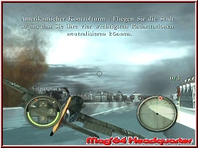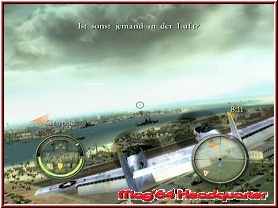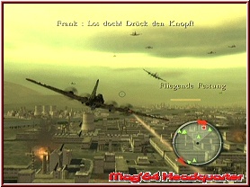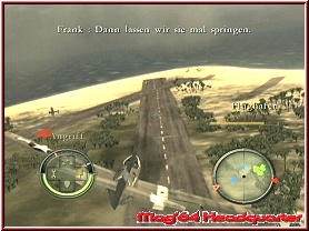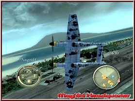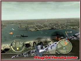 Auch hier nichts schlechtes. So sind die einzelnen Missionen immer von mehreren Aufgaben durchzogen. Dabei startet Ihr die Missionen nach recht langen Ladezeiten mal direkt in der Luft oder müßt von Flughäfen und Flugzeugträgern erst starten. Einmal in der Luft gilt es den ersten Teilauftrag zu lösen. Das schöne daran wenn Ihr z.b. 4 Aufgaben in einer Mission habt, nach jeder Teilmission ein Speicherpunkt greift. Geht Ihr also mittendrin drauf, so startet man die Mission nicht komplett neu, sondern am letzten Speicherpunkt. Das macht das Spiel flüssiger und Frustfrei trotz der spielerisch anspruchsvollen Action. Ihr habt 3 Flügelmänner an der Seite, wobei einer davon ein Flieger Ass ist. Per Kreuzrichtungen könnt Ihr im Flug nun diverse Kommandos vergeben. Z.b. könnt Ihr den Ass Piloten per Kreuz rechts anweisen sich um schwere Gegner zu kümmern. Ihr könnt die gesamte Gruppe um euch sammeln, euch den Rücken freihalten lassen oder aber alle mit Feuerbefehl frei auf die Gegner loslassen. Zu guter letzt kommt auch eine Reparaturfunktion dazu die eher an einen R2-D2 erinnert. ;-) Mittels Kreuz links könnt Ihr den Co-Piloten zur Reparatur des Fliegers aktivieren. Dazu muß man live in der Luft eine Tastenkombi nachdrücken, die je nach Erfolg auch die schwere des Schadens behebt. Wiegesagt ein bißchen Arcade like, aber warum nicht. Ebenfalls mehr Arcade like ist das Thema Munition. Egal ob Bomben oder reines Bord MG, beides ist unendlich vorhanden. Nur mit dem Unterschied das sich Bomben und Torpedo Anzeigen erst wieder "nachladen" müssen. Das Ihr dies alles aber braucht zeigen z.b. Missionen in Nordarfrika oder dem Pazifik überdeutlich. In Nordafrika habt Ihr es neben mehreren dutzend deutschen Fliegern live in der Luft auch noch mit Rommels Bodentruppen zu tun um die Ihr euch kümmern müßt. Im Pazifik jagen die Zeros nur so über den Hafen, während Ihr danach die japanische Flotte inklusive Träger, Schlachtschiffen und Fliegern attackieren müßt. An Action mangelt es euch in diesem Spiel nicht. Verschiedene Licht und Wetterverhältnisse sorgen zudem noch für unterschiedliche Bedingungen. Habt Ihr eine Mission abgeschlossen gibt es zudem noch eine Bewertung.