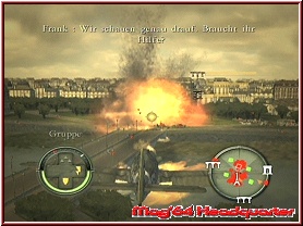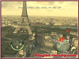 Später wenn Ihr japanische Träger aus der Luft angreift oder über Paris deutsche Jäger jagd, das ganze sieht damit ungemein stimmig aus und hat auch seinen Zweck. Habt Ihr dabei Aufträge die Bomben oder Torpedos enthalten, bekommt Ihr zudem ein Zielpunkt Anzeige am Boden, so das Ihr genau wißt wann Ihr diese abwerfen müßt. Danach einfach auf die Zielkamera zu gehen und zuzuschauen wie diese Einschlagen ist einfach, (sorry das ich das so sage), ein geiler Moment. Ebenso geübt wird zu Beginn Feindkontakt, bei dem ein deutscher Aufklärer euren Übungsplatz erkunden will. Also jagd man ihn und muß ihn eliminieren. Mit kleinen eckigen Kennzeichnungen in der Luft erkennt man später anhand dieser farblich verschiedenen Kennzeichnungen ob es sich um Freund oder Feind handelt. Danach jagd man ihm hinterher und darf sich Dank unendlich MG Munition die Seele aus dem Leib ballern. Auch hier greift ein gutes System, das ebenfalls nicht Arcade like daherkommt. Verzögerungen beim Schießen und je nach Entfernung des Zieles und Ihr müßt immer anders herangehen. Mal könnt Ihr einen Gegner direkt attackieren wenn Ihr euch hinter ihn setzt oder könnt auch leicht vor ihn schießen. Sind die Geschosse am gewünschten Punkt hat der Gegner vielleicht gerade diese Zone erreicht. Denn einfach nur gerade gehen die Geschosse nicht. Vor allem wenn Ihr euch gerade in Kurven befindet. Über allem steht dabei aber weiterhin das sehr gute Fluggefühl durch die sehr gute Steuerung. Habt Ihr diese Lektionen abgeschlossen dürft Ihr den eigenen Flieger auch landen und von nun schickt man euch in den wahren Einsatz. Jetzt kommen auch die Flügelmänner dazu und die vielen weiteren Features dieses gelungenen Spiels. Das schöne dabei ist das Ihr von nun an immer die gleichen Flügelmänner dabei habt, also das gleiche Team das Spiel hindurch zusammen ist. Erhöht ebenfalls den Bezug zu den einzelnen Charakteren. Der erste richtige Einsatz führt euch zum Schauplatz Dünkirchen, wo Ihr den Abzug der englischen Truppen decken müßt. Egal welchen Einsatz Ihr im Spiel später auch angeht, ein gewisser roter Faden in Sachen Abläufe zieht sich immer durch.