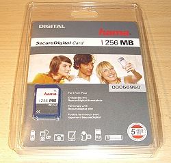 Auch „Hama“ ist im Bereich der SD-Karten kein Unbekannter und daher widmen wir uns auch dessen Produkte. Beginnen wollen wir mit der „Hama – 256 MB SD Memory Card“. Zwar ist die Speicherkapazität der vorgestellten Karte kein Überflieger, dennoch reicht sie für Otto-Normal-Spieler aus. Solltet Ihr allerdings auch im Foto- oder Musikbereich aktiv sein, könnte der Speicher auf lange Sicht knapp werden. Mit einer fünf Megapixel-Kamera passen rund 100 Bilder in hoch aufgelöster Qualität auf die „Hama“-Karte. Je mehr die Pixelzahl nach unten geschraubt wird, desto mehr Fotos dürft Ihr auf dem Modell speichern.