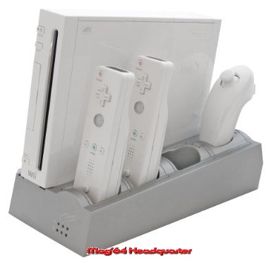 Auch auf der Wii will „Kamikaze Gear“ (das Brand von „Pebble Entertainment“) im Jahr „Drei“ ihres Releases die Spieler mit Zubehör beglücken: Die Wii von Nintendo steht bei den meisten von Euch auf dem mitgelieferten Standfuß zu Hause neben dem Fernsehgerät. Diese Lösung ist durchaus eine gute, dennoch gibt es Zubehörhersteller wie „Pebble Entertainment“, die sich so ihre Gedanken in Bezug auf die Zweckmäßigkeit gemacht haben. Denn bislang wird zwar die Konsole sauber präsentiert, allerdings kann man dies von den Controllern nicht behaupten. Daher entschied man sich dazu, eine eigene Station anfertigen zu lassen (baugleich mit der damals veröffentlichten „EA Sports“-Edition), in welcher bereits Einlassungen für die Controller existieren. Hinzu kommt eine Schalung, die manuell eingesetzt werden kann. So könnt Ihr nun problemlos vier Wii-Fernbedienungen in stehender Weise absetzen, alternativ dazu auch zwei Wii-Remotes und zwei Nunchuks. Als dritter Alternativvorschlag gingen auch drei Bedienungen und ein Nunchuk.