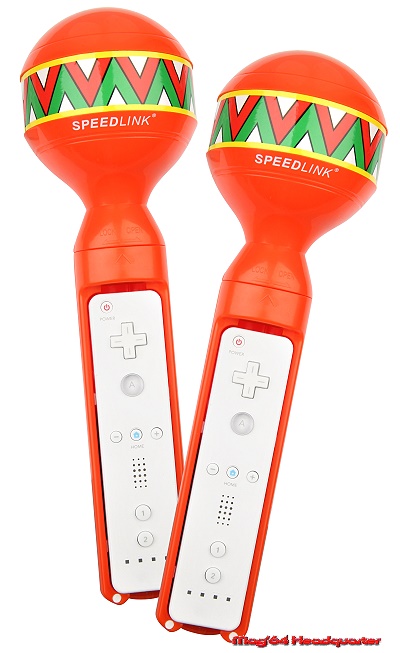 Maracas oder Rumba Shakers – wir würden es Rasseln nennen. Gleichgültig, wie man das „Speed-Link“-Produkt auch bezeichnet, das Resultat bleibt das gleiche: Samba-Feeling – nur wegen ein paar Kügelchen, die sich im Kopfbereich der Maracas befinden. Beim Schütteln wird dadurch ein Geräusch erzeugt, das für den südamerikanischen Sound kennzeichnend ist, für den Rhythmus steht und in jeder Lebenslage das Blut in Wallung versetzt. Für „Samba de Amigo“ (Wii) scheinen die „Maracas for Wiimote“ unumgänglich zu sein. Ohne deren Verwendung macht das Spiel nur einen Bruchteil des Spaßes aus, wie wenn man die orangefarbenen Rasseln (auf der Packung wird von „knallroten Rumbarasseln“ gesprochen; entweder sind wir farbenblind oder man hat sich hier gehörig bei der Bezeichnung vertan) tatsächlich zum Einsatz bringt.