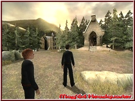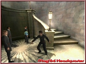 Anders als in den Handheld Versionen ist der Beginn im Spiel, was sich natürlich mit den technischen Möglichkeiten erklären läßt. Nach einer einführenden Sequenz in InGame Grafik und einem kurzen Rundflug über Hogwarts landet Ihr als Spieler zuerst im Versteck des Orden des Phönix. Nicht ohne Grund, da Ihr hier in einem kleinen Tutorial den ersten Kontakt mit dem Gameplay, der Sichtweise und dem Ablauf hinter euch bringt. Freunde des Frei Bewegens in einem Spiel wie diesem dürfen sich freuen. Nicht nur hier im Versteck, sondern natürlich auch später in Hogwarts und allen anderen Locations dürft Ihr euch frei bewegen und der Adventure Touch alter Tage kehrt sehr schnell ein. Gleich ist dabei überall die Sichtweise im normalen Gameplay. Ihr seht Harry und die später steuerbaren Charaktere aus der Third Person Perspektive und steuert ihn in langsamen Tempo mittels des Nunchuk 3D Sticks. Drückt Ihr dazu die Z-Taste rennt Harry, was schnell zur normalen Taste wird, da im normalen Tempo Harry eine reine Schnecke ist. ;-) Vergleichbar mit vielen Konkurrenzprodukten ist so das Thema Bewegung abgedeckt. Schaut Ihr eine andere Richtung als die dynamisch mitgehende Kamera, so könnt Ihr per antippen der C-Taste die Kamera jederzeit hinter den Helden holen. Haltet Ihr die C-Taste länger gedrückt, so wechselt das ganze in einen sogenannten Entdeckerblick. Hier bleibt Harry wie angewurzelt stehen und alles um euch herum wird nah herangezoomt und Ihr könnt nun mit dem 3D-Stick überall hinschauen. Wie später im Spiel folgen euch schon hier im Versteck Charaktere auf eurem Weg, was später in Hogwarts fast immer Ron und Hermine sein werden. Gleichzeitig bekommt Ihr als Spieler eine erste Einführung in die Zauberei und dürft einfache Alltagszauber wie Reparo oder Wingardium Leviosa erlernen. 6 Alltagszauber gibt es im Spiel, die Ihr teilweise aber erst mit der Zeit erlernen könnt. Ein paar Geheimnisse und Aufgaben sollen ja auch noch vor euch liegen. ;-) Die Ausführung ist nun wie gemacht für die Wii Steuerung mittels des Zauberstabes, ähm natürlich der Remote.