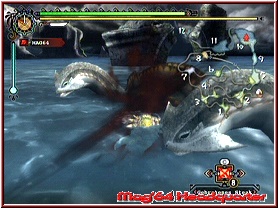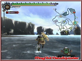 Danach wird abgerechnet und neben persönlichen Belohnungen, profitiert auch das Dorf davon. Denn viele der dabei erspielten Materialien werden simpel gesagt in Rohstoffpunkte für das Dorf umgewandelt. Diese dienen dazu, um mit der Zeit erweiterte Möglichkeiten dort zu erhalten und die sogenannten Dorf Quests zu erfüllen. Einfaches Beispiel ist die angrenzende Farm, die euch so mit der Zeit mehr Möglichkeiten anbietet, Produkte selber anbauen zu lassen. Innerhalb der Quests verändert sich oben links die Anzeige, so dass Ihr immer im Blick habt, wie viel Zeit noch zur Verfügung steht. Dabei muss man immer beachten, das oft auch Dinge in der Basis abgeliefert, sprich auch Laufwege eingeplant werden müssen. Je mehr Quests ihr löst, um so mehr Gebiete bekommt Ihr zur Verfügung gestellt. Und nach einer gewissen Zeit giert man danach, auch wenn man weiß, das man Waffentechnisch noch auf der Stelle tritt. Aber man will einfach neue Materialien. Und die gibt es eben erst bei neuen Gegnern. So schaukelt sich das System wunderbar auf. Egal ob Ihr nun zu Lande agiert, oder eben neu in der Wii Version auch Unterwasser. Hier begegnet euch direkt zu Beginn des Spiels Lagiacrus und man darf kurz mal seine Grenzen kennenlernen. ;-) Hat aber was im feuchten Nass zu Agieren, da hier neben speziellen Materialien, die es nur hier gibt, natürlich spezielle Monster lauern. Auch die Steuerung kann überzeugen und lässt sich nach anfänglicher Eingewöhnungsphase gut bedienen. Wie gesagt, zu Beginn geht vieles ein wenig zäh von der Hand, da viele Grundlagen erst an den Spieler gebracht werden. Schließlich hat man hier in der Tat ein Spiel mit epischen Ausmaßen vor sich. Hat man einmal das System verstanden, packt es den Spieler. Das ist auch klar meine eigene Geschichte mit diesem Spiel. Es kommt der Zeitpunkt, wo man jedem Zentimeter absucht, sich auf neue Gebiete ungemein freut und bei jedem neuen Monster frohlockt, was er wohl an Materialen bringt. Hat man dann auch seine ersten Upgrades in Sachen neue Waffe hinter sich gebracht, fesselt das Spiel. Wobei ich mich dann dennoch oft bei dem Gedanken ertappt habe, was wohl wäre wenn auch noch ein komplettes Level System enthalten wäre.