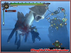 Spielerisch muss man sich in diesem Spiel keine Sorgen machen. Im Gegenteil. Alte PSO Cracks werden sich am Gameplay hier erfreuen. Egal ob Ihr Allein oder zu Viert auf Pirsch geht, alles läuft flüssig ab und man spürt wie schon erwähnt keine Unterschiede zum Offline Spiel. Euch erwarten hier die gleichen Umgebungen, allerdings mit oftmals anderen Items an bestimmten Stellen. Will man eine Quest starten, kann man dieser zunächst die Anzahl der Spieler zuteilen. Also ob ihr allein spielen wollt, oder Gäste willkommen sind. Schließlich sehen Gäste ja was eventuell an Quests am "schwarzen Brett" aktiv ist. Wer mit speziellen Freunden loslegen möchte, kann zudem ein Passwort vergeben für seine Quest. So schließt man ungebetene Gäste also aus. Im Spiel könnt Ihr euch nun wahlweise via Chatfunktion, Tastatur oder eben WiiSpeak verständigen. Dazu kann man einstellen, wie die Einblendungen gestaltet sein sollen. Ich für meinen Teil empfand den Namen über dem Kopf als treffendste Variante. Alles in allem ist der Online Modus für Monate eine Fundgrube für alle MH Cracks. Eben auch weil man mal allein schauen kann, wie gut man ist, oder eben gezielt nach Mitstreitern für eine bestimmte Quest sucht. Alle Extreme sind abgedeckt. Und Spaß macht es allemal mit Freunden Stundenlang durch die Gegend zu ziehen. Mal auf einer schweren Quest, oder auch bei mehreren hintereinander. Vom Feeling her wie in den guten alten PSO Tagen. ;-)
