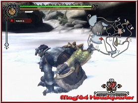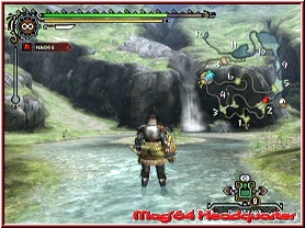 Dinge wie Magie oder andere spezielle Eigenschaften sucht man aber vergebens. Würde man also nicht selber aktiv werden bei der Ausrüstung des Helden, die simple Schlagwirkung wäre nach 20 Stunden genauso hoch wie nach 1 Stunde. Man muss hier also ein wenig umdenken. Zunächst ist Monster Hunter 3 natürlich ein Action Titel, wie er im Buche steht und spielt sich schon sehr Vergleichbar zu anderen Rollenspielen. Vergleiche es trotz Alters immer wieder gerne mit PSO. Also seht mir die Vergleiche hier etwas nach. ;-) Um nun im Spiel etwas zu reißen, gilt es Geld zu verdienen und Materialien zu finden. Beides dient dazu um den Charakter in Sachen Ausrüstung besser zu machen. Und nur so geht es auch. Erst wenn man eine neue Waffe besitzt, wird der Charakter besser. Schauen wir uns mal ein paar Grundlagen an. Zu Beginn des Spiels gibt man euch leichte Suchen & Finden Aufgaben, die garniert sind mit ein wenig Monster Action. Über mehrere Wege kann man das Dorf verlassen und wahlweise frei in den angrenzenden Gegenden umherstreifen, oder eben man nimmt eine der zahlreichen Quests an, die jeweils ein bestimmtes Ziel von euch verlangen, dass es nach Zeit zu Lösen gilt. Beginnen wir mal mit einem simplen Herumlaufen ohne eine Aufgabe, um das System ein wenig kennenzulernen. Ausgehend vom Dorf selber bietet das Spiel verschiedene Areale, die in sich nochmals in viele kleine Gebiete eingeteilt sind. Zwischen diesen Gebieten gibt es immer einen kurzen Ladebildschirm. Als großes Ganzes ist die Spielwelt hier also nicht gestaltet. So erwarten euch zunächst einfache Wald & Wiesenlandschaften. Innerhalb dieser Areale kann man nun auf verschiedenste Weise an Materialien gelangen. Beispielsweise kann man Pilze sammeln, Erze per Spitzhacke abbauen oder Monster töten, um von ihnen spezielle Materialien zu bekommen. Um diese Dinge zu Sammeln, besitzt Ihr einen Art Rucksack, der Anfangs zwar ausreichend Platz zu haben scheint, mit der Zeit aber ruhig größer sein könnte. Vor allem auch deshalb, weil man bei vielen Materialien nur begrenzt viel davon aufnehmen kann. Die üblichen 99er Mengen hat man hier nicht und bei vielen ist bei 10 Schluss. Und je nach Quest oder Herumstreifen, kann das viel zu wenig sein.