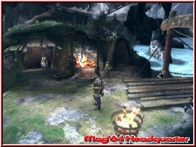 Bevor man sich aber an die spielerischen Feinheiten machen kann, gilt es natürlich erst mal einen Helden zu Erschaffen. Dafür steht euch ein sehr umfangreicher Editor zur Verfügung, der vor allem in Sachen Kleidung einiges hergibt. Auch wenn man sagen muss, das sich der Charakter im Verlauf mit jeder neuen Rüstung z.b. auch visuell verändert. Für die Ewigkeit gestaltet man hier zu Beginn also nichts. ;-) Ihr gebt dem Charakter einen Namen, der später auch Online angezeigt wird und erlebt danach den eigentlichen Spielstart. Per Sequenz werdet Ihr Zeuge eurer eigenen Ankunft per Handelsschiff im Dorf Moga, wo euch kurz darauf der Älteste und dessen Sohn begrüßt und ein wenig in die Örtlichkeiten und Gegebenheiten einweiht. Nicht umsonst macht man so einen ersten Kontakt mit Lagiacrus, wenn auch nur als Erzählung. Danach entlässt man euch nach ein wenig Plauderei in das Spiel und Ihr dürft euch mit den ersten spielerischen Dingen in Monster Hunter 3 befassen. Allein schon weil euch eine Unterkunft und etwas Geld überlassen wird, will man ja nun unter anderem auch erst mal die Infrastruktur des Dorfes kennenlernen. Ebenso bekommt ihr schon mal die Sichtweise auf Geschehen präsentiert. In Monster Hunter 3 spielt sich die Action, bis auf wenige Waffentechnische Momente, in der Third Person Perspektive ab. Auch hier findet man also große Parallelen zu vielen Adventure oder Rollenspielen. Gesteuert werden kann der Titel sowohl mit Doppel Remote/Nunchuk, sowie dem angesprochenen Classic Controller. Natürlich immer eine gewisse Geschmackssache, bin ich mit der Zeit bei der Remote/Nunchuk Variante geblieben. Hier spielen dann logischerweise auch Aktionen via freier Bewegungen eine Rolle. Bevor man sich also ein wenig in die spielerischen Tiefen begibt, kann man erst mal das zunächst klein wirkende Dorf besuchen. Man findet hier wie schon erwähnt eine eigene Unterkunft, in der man Speichern kann und die persönliche Objektkiste vorfindet. Denn eigentlich bei jedem Ausflug in die Gebiete hinter dem Dorf bringt man irgendwas an Items und Materialien mit. Nicht alles wird gehandelt, verkauft oder gleich gebraucht. Also will man es ja irgendwo Lagern. Ebenso könnt Ihr hier immer wieder den Editor aufrufen, um vielleicht noch ein wenig am Aussehen zu feilen.