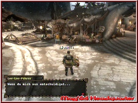 Über das Startmenu kann der Spieler nun auswählen, dass er Online loslegen will. Sobald Ihr Online seid, dürft Ihr zunächst aus mehreren Servern wählen. Dabei hat Capcom das System so angelegt, dass für die einzelnen Erfahrungen der Spieler auch entsprechende Server enthalten sind. Seid Ihr Neuling, oder ein Crack, oder ist es völlig egal wie Gut und Erfahren man ist. Für alle Vorlieben existiert ein entsprechender Server. Selbst für Jäger, die ein ganz spezielles Ziel oder Monster jagen wollen und dafür Unterstützung suchen, existiert ein entsprechender Server. Danach wählt der Spieler eine Stadt und ein sogenanntes Tor aus. Auch hier erwarten euch reichlich Varianten, die euch zudem auch Anzeigen, wie viele Spieler gerade dort zugange sind. Und wie man es erwarten kann, tummeln sich auf den Hauptservern gerne mal Spielermassen im 5stelligen Bereich. Mangel an Action mit Fremden muss man hier also nicht befürchten. Bevor man in die eigentliche Stadt gelassen wird, welche einfach gesagt das Gegenstück zum Dorf Moga im Offline Modus darstellt, wählt man zusätzlich auch noch ein Tor, das wie ein Art Vorhof fungiert. Ist schon sehr durchdacht das System. Erst jetzt landet man wirklich im Spiel selber und darf sich über 2 Dinge freuen. Tore und die Stadt selber sind komplett neue Umgebungen und man spürt als Spieler bis auf die Online Einblendungen keinen Unterschied zum Offline Modus. Vor allem technisch ein ganz besonderes Schmankerl auf der Wii. Damit man auch gleich richtig eingestimmt wird, startet der Besuch in der Stadt auch mit einem speziellen Vorspann, der ebenfalls qualitativ sehr gelungen ist. Danach kann man sich nun ein wenig Umsehen und eben frei bewegen.