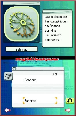 Ihr könnt euch zunächst also vorstellen das jeder Raum oder jede Location den Entdeckerdrang des Spielers weckt und man erstmal alles erkundet nach detailliert untersuchbaren Objekten. Jetzt kommt das schon angesprochene DAS zu seinem Recht. Dieses Gerät dient wenn man wo will als Inventory im Spiel und bietet dazu auch noch die Möglichkeit punktgenau zu speichern. Alle Objekte die der Spieler findet und aufnehmen kann werden hier abgelegt und können so später auch genutzt werden. Denn schaut man in einem detaillierten Sichtbereich, so erhält man auch ein Taschensymbol zur Lupe dazu. Was bedeutet das man Dinge die man selber im Besitz hat anwenden kann. Genau in dieser Art sind sehr viele Rätsel im Spiel gemacht. Auch hier soll wieder ein Beispiel das ganze verdeutlichen. An einem Ort gelangt man an eine Tür die durch einen Strick versperrt ist. Man muß also etwas finden um diesen zu zerschneiden. An einem anderen Ort findet man nun z.b. ein rostiges Messer. Hat man dieses gefunden und in seinem Inventar abgelegt geht man erneut zu dieser Tür und wählt das Taschensymbol aus und bekommt Zugriff auf seine Ablage. Man wählt das Messer aus und wendet es am Strick an. Es gibt Rätsel die man so komplett löst oder wie in diesem Fall auch noch den Touch Screen benutzen darf. Denn jetzt müßt Ihr auf dem TC den Strick per Schneidebewegung auch noch von Hand zerschneiden. Diese Mischung aus Rätseln findet man häufig. Dabei waren die Entwickler aber so clever den Gedächtnisspieler zu kitzeln. Auch hier ist das Tür und Messerrätsel ein gutes Beispiel. Findet man das Messer zuerst, so kann man das Messer nicht aufnehmen und es sich nur anschauen. Erst wenn die Tür auch entdeckt ist kann man das Messer auch mitnehmen.