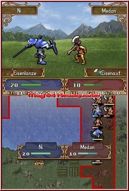 Im Vergleich mit dem Vorgänger „Fire Emblem – The Sacred Stones" (bei uns im Test: 92 %), der aber eigentlich gar keiner ist, wurde das Altbewährte beibehalten. Als eine Art Heerführer dirigiert Ihr Eure Einheiten auf den Schlachtfeldern umher. Das Geschehen läuft rundenweise ab, so dass zuerst der Zug des Spielers, dann der Gegnerzug getätigt wird. Eure Einheiten entstammen den unterschiedlichsten Gattungen: Rittmeister, Pegasus-Ritter, Kavalier, Myrmidone, Held – ein Auszug aus dem 17 Einheiten umfassenden Spektrum. Jedes Mitglied Eures Teams hat eine spezifische Reichweite, die für den Spielerzug von großer Bedeutung sein kann. Berittene Einheiten kommen meist schneller vorwärts, zu Fuß benötigt eine Einheit den einen oder anderen zusätzlichen Zug.