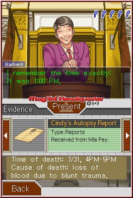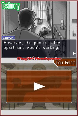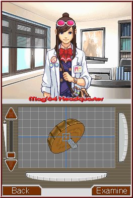 Doch bevor es an den eigentlichen Gerichtsschauplatz geht, steht das spannende Gewinnen von Beweismaterial an erster Stelle Eurer abwechslungsreichen Tätigkeitsfelder. Für jeden Fall stehen einige Lokalitäten bereit, die es zu besuchen gilt. So besucht Ihr in der Regel immer das Polizeirevier, um mit Inspektor Gumshoe interessante Gespräche zu führen. Häufig hat er wichtige Infos, wie Autopsieberichte, bei sich, die er Euch gerne zur weiteren Ermittlung überlässt. Auch die Tatorte sind ein Muss für das weitere Vorgehen. Jedoch kann es sein, dass es nicht möglich ist, diese von Anfang an zu besuchen. Beispielswiese müsst Ihr Euch eine Erlaubnis von höchster Stelle besorgen. Eure Anfrage solltet Ihr aber gut durchdacht vortragen. Standfestigkeit ist alles in "Phoenix Wright - Ace Attorney"! Teilweise sind die Orte, die Ihr besucht zweiteilig und demnach genauer zu betrachten als ein einzelner Bildschirm. Mit einem Fadenkreuz "bewaffnet" versucht Ihr aus den Standbildern Details hervorzukramen, die Ihr untersuchen könnt. So liegt im fünften Fall eine Brieftasche auf dem Boden des Tatorts. In ihr befinden sich wichtige Beweismaterialien des Opfers. Erst wenn sich alle relevanten Objekte in Eurem Besitz befinden, ist es möglich in den eigentlichen Prozess einzusteigen - immerhin muss die Beweislast eindeutig sein! Halbgare Ermittlungsweisen sind einfach nicht Phoenix Wrights' Sache. Wesentlich sind die Informationen für den folgenden Prozess. Im Laufe der Zeit sammelt Ihr derartig viele Materialien, dass es teils kleinteilige Schwerstarbeit ist, den richtigen Beweis zur Aussage zu finden.