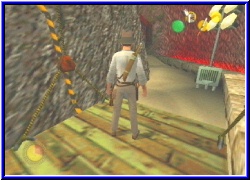 | Aber die hilft mir nicht. Hätte ja sein können. Denn werfen und ein paar Sekunden hätte ich ja gehabt. Aber es wird nix. Als ich ein letztes mal hier herumschaue fällt mir dann doch noch etwas auf. An der Seite ist wie ein Art Kopf aus dem hier die Lava fließt. Seitlich davon steht in der Ecke eine Plattform. Warum? Ganz einfach. Von dort aus kann ich zu dem Kopf hangeln an dem ich oben über einen schmalen Steinweg weiter in das innere komme. Also Factor5, wieder so ein Rätsel wo man genau hinschauen muß. Also hoch dort und immer wieder die Seiten wechseln um über die Lava zu kommen. Am Ende sehe ich einen Eingang in den Berg wo keine Lava ist. Dort muß ich hin. Was für eine Wendung. Denn jetzt erreiche ich ein kleines Gefängnis, wo ich erstmal die Wache umnieten muß und im Anschluß Sophia befreien kann. Und so löst sich eine Rätsel. Denn sie haut zwar ab, steht aber ein paar Minuten später jetzt an dem Schalter von vorhin. Nachdem beide dort noch ein Schwätzchen gemacht haben beginnt die Sequenz und Indy schwingt sich rüber und Sophia drückt den Schalter damit Indy hinter das Gitter kann. Schon cool gemacht. Ist ja fast wie in RE. Fehlt nur noch das ich Sophia irgendwann auch mal steuere. Tja nun stehe ich auf der anderen Seite. Ist das Level riesig. Ich sehe zwar unten einen Weg, kann mir aber momentan nicht vorstellen das dort das Levelende wartet. Also den Holzsteg hier entlang und nach. Wie immer auf alles gefaßt was wohl noch kommen könnte. Wieder eine Lavahalle erwartet mich. Rechts ein zünftiges Stoi, das schnell erstirbt. Aber wieviele dieser Hallen gibt es denn noch. Links erreiche einen Art Fahrstuhl nach drüben. Aber nutzen kann ich ihn nicht. Indy bemängelt etwas. Die Kiste daneben kann ich aber verschieben. Mal sehen wohin ich sie schieben kann. Also losgezogen.. und ..oh nein, das Spiel ist abgestürzt. Oh Gott. Lange her das ich einen Absturz mal mit erleben mußte. Also Reset und wieder bis hierher gespielt. Trotzdem nervig. :-( Schlimm nur das das immer wieder passiert an dieser Stelle. Immer wenn ich die Kiste verschieben will stürzt das Spiel ab. Zumindest dann wenn ich sie auf ein Holzsteg schieben will. Dabei weiß ich ja garnicht ob das richtig ist. Was ich hier wieder an Zeit verloren habe. Immer wieder schiebe ich die Kiste durch die Gegend bis ich es aufgebe. Es muß was anderes geben. Nochmal laufe ich alles ab bis hinter zum Gitter und endlich, wieder nur per Zufall geht es weiter. Auch hier ist eine Plattform genau nach dem Gitter wo ich Sophia das letzte mal gesehen habe. Stehe ich dort muß ich schon mit dem Feuerzeug schauen um eine Kante seitlich von mir zu sehen. Dort geht es tatsächlich weiter. |