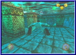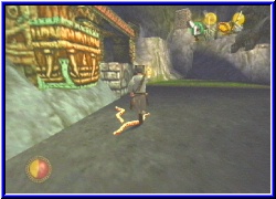 | Also dann liebe Leser. Auf zum Becken und diesem Tempel hier. Als erstes in das Becken. Unter Wasser finde ich einen Weg, der durch ein Tor geschlossen ist. Weiterhin relativ viele Steine. Nur unter Wasser kann ich damit nicht soviel anfangen. Hmm..., etwas weiter direkt unter dem Wasserfall kann ich hinter den Kopf oben tauchen. Später. Erstmal gehe ich auf der anderen Seite an Land und lege zunächst mal eine Schlange mit der Machete um. Was ich hier immer die Pistolenmunition vergeude wenn es so einfach geht. Wissen muß man's. Am Ende durch einen kurzen Gang und ich erreiche das Ziel hier. Die Brücke, die natürlich auch noch nicht aktiviert ist. Irgendwie komme ich immer höher in der Schlucht raus. Von der ersten Brücke hätte ich noch springen können. Hier lasse ich das mal lieber. Also wieder zurück und unter den Wasserfall getaucht. Danach kann ich einige kleinere Sprünge langsam nach oben. Dort angekommen stehe ich nun genau neben dem Kopf. Hey ein Schalter! Was er wohl bewirkt. Zumindest etwas mit dem ich nicht gerechnet habe. Denn mit ihm schließe ich den Mund des Kopfes und das Wasser wird gestoppt. Jetzt leert sich unten das Becken und es ist total trocken da unten. Klar jetzt könnte ich auch die Steine bewegen. Interessant. Denn Ziel ist es auf jeden Fall erneut einen Block draußen in der Schlucht auf einen Schalter zu bekommen. Na dann schauen wir doch mal was wir da unten machen können. 2 Blöcke sehe ich hier. |