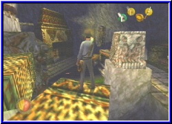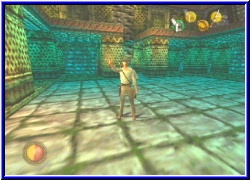 | Oben angekommen kann ich aber nur einen Schatz nehmen. Kaum genommen kriege ich einen fetzigen Schreckmoment. Denn die ganze Geschichte fängt an zu wackeln und fährt mit mir nach unten und läßt mich auf einer Plattform stehen. Na Klasse. Ich wollte doch oben noch ein wenig umherschauen. Nun stehe ich hier und sehe um mich um. Eine riesige Halle und komische Schalter am Boden. Warscheinlich wieder die wo ich nicht drauftreten sollte. Also lasse ich mich hier ab. Eine Runde gelaufen und ich merke das nur die beiden Türen auf den entgegengesetzten Seiten irgendwie den Weg weiter beschreiben. Wie kriege ich sie wohl auf? Vielleicht die Fackeln auf beiden Seiten der Tore. Hey, cool es klappt. Oh GOTT.....was ist das !!!!??? Eine riesige Schlange windet sich aus dem Gang dahinter und greift mich an wie damals der blaue Dödel in Tian Shan. Wieder gehe ich sofort drauf. Oh gott was ist das für ein Vieh. Ich glaube mit der Machete wird das hier nichts. Das Vieh ist ja riesig. Also hier heißt es erstmal rumprobieren wie ich diese Schlange verletzen kann, geschweige denn töten. Also ein paar mal versuche ich hier alles mögliche. Nichts will klappen. Erwischt mich das Vieh mit seinem Körper schleudert es mich durch die ganze Halle. Verflucht nochmal. Wie kriege ich dieses Vieh? Irgendwann sage ich mir renne doch einfach mal in den Gang wo die Schlange herkam. Zumindest sehe ich neues. Am Ende ist ein Block im Boden. Oben ist ein Altar. Hoch komme ich aber erst wenn der Block hier vielleicht nach oben fährt. Nur wie? Obwohl. Jetzt fällt mir die 2. Tür auf der anderen Seite ein die ich ebenfalls mit 2 Fackeln aufbekomme. Tatsächlich ist dort ein Schalter im Boden. Jetzt nutze ich dann auch mal das 2. Teil der Machine, das mich ja unsichtbar macht. Tja Kumpel, nun suchst Du mich. :-) Aber ewig hält das nicht. Gottseidank ist tatsächlich der Block nach oben gefahren. Ja was ist denn das!!!! Das 3. Teil der Infernal Machine. Welche Überraschung. Oh Indy, wir kommen dem Ziel immer näher. Bleibt diese bekloppte Schlange. Wie kriege ich dieses Vieh endlich. Vielleicht muß ich mich unsichtbare machen und dann eine bestimmte Stelle angreifen. Ach Gott Möglichkeiten gäbe es genug. Was soll ich sagen. Knappe 1 ½ Stunde habe ich an diesem Vieh gesessen. Irgendwann habe ich es rausbekommen wie es zu knacken ist. Nur mit dem 3. Teil und mehreren Schritten ist der Schlange beizukommen. |