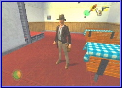 | Na dann, es klappt auch. Lustig, ich komme in der Küche raus. Alter Herd und ein paar Flaschen hochprozentiges. :-) Aber auch eine Tür um weiter zu kommen. Danach folgt die Essensausgabe oder Kantine, wie man will und es löst sich das Rätsel mit der Tür die von außen verschlossen war und hier hin führt. Weiter geht es nun nach oben. Ja das ist auch gut so. Immer in Richtung Brücke des Potts. Kaum oben angekommen beginnt eine weitere Spielsteuernde Sequenz . Indy versteckt sich in einer Niesche wo ich schon das 3. Teil sehe und steht eine Wand vor der Brücke wo sich Volodnikov und der Steuermann unterhalten. Es ist die Rede von Agypten und einem unentdeckten Schatz. Ich glaube hier wird das nächste Ziel und der Fundort des 4. Teils verraten. Wenn er wüßte wer ihm hier zuhört. Am Ende geht er Richtung Kantine und genau an Indy vorbei und sieht ihn aber nicht. Schön gemachte Sequenz. Oh, jetzt aber. Erstmal das Teil aufgenommen. So nun hätte ich ja alles was ich brauche. Bis auf das Teil am Haken und eine Möglichkeit das Rettungsboot herabzulassen. Mist die Tür zur Brücke ist zu. Was denn nun. Jetzt wirds interessant. Wo muß ich hin? Volodnikov suchen? Also wieder zurück und schauen wo ich nochmal hinkönnte. Vielleicht jetzt zur goldenen Tür? Also gehe ich zunächst nochmal über das gesamte Schiff oberhalb. Überall neue Wachen. Aber neues finde ich nicht. Also gehe ich doch wieder in das innere des Schiffes. Zunächst zur goldenen Tür, aber nichts neues. Runter zu den Mannschaftsquartieren. Aber auch hier ist nichts neues. Was bleibt noch? Nun ich könnte nochmal zum Lagerraum. Vielleicht ist irgendwas neu oder verändert. Also wieder runter. Ab zum Kranschalter und drücken.... und.....nein nicht schon wieder...., das Spiel stürzt erneut ab. Das kann doch nicht wahr sein. Will man hier nicht das ich das Level beende? Man kann mir auch anders zeigen das ich das falsche gemacht habe. Doppelnerv! Wieder bis hierher spielen. Es ist echt zum verzweifeln. Denn ich kann diesen Absturz erneut provozieren. Erst wenn ich mal kurz die Seitwärtsrichtungen drücke gehts wieder. Schlimm. Trotzdem bin ich immer noch nicht weiter. Ich weiß nicht wie lange ich erneut durch diesen Pott gelaufen bin. Mittlerweile ist Indy schon Seekrank. Ich finde einfach keinen Weg um weiter zu kommen. So langsam verzweifle ich schon wieder. eine gute Stunde später sollte mir Gevatter Zufall erneut mal helfen und mich auf die Lösung bringen. Aber ein Rätsel auf das man wirklich kommen muß. Gezielt kriegt man das wohl nicht raus. |