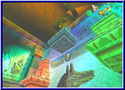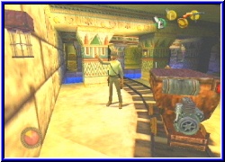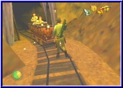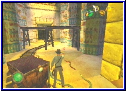 | So, heute gibts den Tag wieder etwas eher. Noch Rückblickend muß ich sagen das dieses Level in den Pyramiden wirklich sehr schön war und am meisten Spaß gemacht hat. Auch weil ich hier mit am längsten gesessen habe was jeden Adventure Freund sehr gefallen dürfte. Doch nun geht es auch hier weiter. Und das nicht schlecht. Denn wie in Palawan seinerzeit geht es auch hier weiter. Nur diesmal nach unten in die Minen von König Solomon. Nachdem Indy Auto gefahren ist geht es nun als Passagier der Lore weiter. Grafisch auch sehr schön gemacht da man sogar die Auspuffgase des kleinen Motors an der Lore sehen kann. Wieder gebe ich mit A Gas und kann mit B Bremsen. Was auch notwendig ist. Denn ich glaube kaum das ich hier nur herumfahren muß. Gleich am Anfang komme ich in der Einführungssequenz in einen sehr bekannten Bereich. Nämlich die Halle die ich von oben gesehen habe mit den Schienen. Nur diesmal hier unten. Was ich damals gegrübelt habe wie ich hier runter komme. Schon lustig. Erst ein Level später war es soweit. Kurz darauf komme ich in einen Stollen und Bremse nun voll und kann auch aussteigen . Irgendwie habe ich das Gefühl ich könnte was verpassen wenn ich hier nur durchfahre. Ein wenig erkunden will ich das ganze schon. Also laufe ich erstmal in die Halle zurück und schaue mich ein wenig um. Aber außer einen Weg an der Seite und einigen Schlangen ist hier nichts. Interessant wird es aber als ich den Weg dort gehe. Ich kann die Schienen hier entlanglaufen und entdecke viele weitere Stollen. |