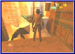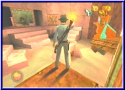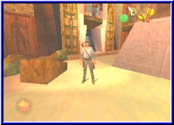 | Gestern wurdet Ihr wieder Zeugen einer neuen Absturzstelle im Spiel. Heute erlebte ich eine ungewöhnliche Neuheit im Spiel. Aber mehr als unbewußt. Testweise steckte das Spiel heute in einem anderen NTSC N64, allerdings ohne Expansion Pak. Zum ersten..., holt euch eins wenn Ihr Indy spielen wollt. Im LowRes sieht das Spiel bei weitem nicht mehr so schön aus. Aber das kuriose war folgendes. Ich hatte einen Levelspielstand innerhalb des Spiels. Keinen auf dem Levelbildschirm. Als ich in das Spiel ging hatte ich einige Schätze des Levels und war nur ein kleines Stück vorangekommen. Jetzt plötzlich erscheint auf dem Levelbildschirm in dem Level das ich angewählt habe ein Expansion Pak Symbol. Noch komischer. Als ich meinen Spielstand geladen habe ging nichts mehr. Aber es war nicht abgestürzt. Nein, das Bild wurde gleich wieder dunkel und ich habe auf einmal die Sequenz des nächsten Levels gesehen, das einfach mal so freigeschalten wurde. Dazu zeigt mir plötzlich der Levelbildschirm an das ich in dem Level des Spielstandes alle Schätze habe. Dazu war mein Savegame gelöscht, so das ich gleich das nächste Level anwählen kann. Indy ist ein Spiel das immer wieder überrascht. Ich werde das am Ende nochmal testen. Wenn auch das reproduzierbar ist dann ist ihre Schatzsuche völlig unsinnig, da man so über Umwege alle holen kann. Aber selbst wenn nicht ist es wieder eine komische Geschichte. Aber egal. Indy hat die Mine auf realem Wege geschafft und weiter geht es erneut nach unten in die Nub's Tombs. Ja Lara läßt grüßen. Also machen wir uns hier an das Werk. Der Name trifft auf das äußere des Levels zu. Zumindest ist der erste Bereich den ich betrete wie ein verschütteter Tempel den wohl lange niemand mehr besucht hat. |