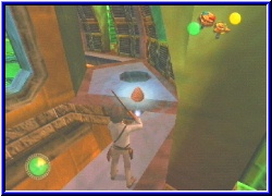 | Ich stehe jetzt in einem runden Raum in dessen Mitte die Halterung des Blockes in dem Sophias hängt zu sehen ist. Jeweils dort wo ein Fenster ist, ist gegenüber eine Lücke in der Wand. Mittlerweile kenne ich bestimmte Dinge. Das ist ein Sprung. Ich muß da rein. Allerdings mache ich einen entscheidenden Fehler. Ich springe sichtbar rein. Denn kaum drinnen werde ich wieder dermaßen durchgebruzelt,... heftig!! Also mache ich mich unsichtbar und springe erneut. Tatsache, wieder kleine Plattformen auf denen ich an einen Schalter gelange und die Energie hier abstellen kann. Kaum getan kann ich erneut über einen Schwebebutton nach oben und die Gänsehaut wird nicht weniger. Denn in einer Sequenz steht Indy plötzlich vor einem 5. Pult mit dem rotem Symbol in dem plötzlich ein silberner Steinblock anfängt zu reden. Ein Kopf.., scheinbar der Wächter der Machine. Er erzählt Indy erneut einiges. Am Ende kann ich diesen Kopf sogar nehmen. So langsam macht es Klick. Es gibt 5 Teile der Infernal Machine. Denn hier wo der Kopf war kann ich das 4. Teil einsetzen das auch aktiviert wird. Ein neuer Fahrstuhl erscheint. Diese Level ist ein enziges Powerlevel. Von einem Event zum anderen. Und alles immens wichtig. Denn der Fahrstuhl bringt mich direkt zum Roboter. Ein Zeichen? Und ob. Denn schnell dahinter gestellt und den Kopf probiert den an mich nehmen konnte. Tatsache er paßt...! Denn jetzt auf einmal wird der Roboter aktiv und zeigt mir erstmal das es wie ein Pferd mit Flügeln aussieht. Zumindest wie ein Fabelwesen. Aber wieder alles voll in Sequenz gehalten. So hoch wie hier war der Sequenzgehalt in keinem Level. Gleichzeigt wird Sophia mit dem Block erneut in die Haupthalle gesenkt, so wie am Anfang. Ein Teil habe ich noch. Bleibt nur noch das Pult in der Haupthalle. So langsam werden die Hände feucht. Ich weiß zwar das auf jeden Fall noch ein Level kommt. Aber trotzdem. Irgendwie ein erhebender Moment, es bis hierhin geschafft zu haben. Die Spannung steigt. Das letzte Teil eingesetzt und den Hebel danach bedient. Und ab geht die nächste lange Sequenz. Der Roboter erwacht und der Kopf wird darauf lebendig. Plötzlich fährt Sophia diesmal nach unten in den jetzt völlig geöffneten Schacht der Infernal Machine und oben beginnt alles an zu wackeln. Es geht zu Ende...., alles immer noch in der Sequenz und Indy flitzt an den Abgrund um zu schauen was mit Sophia passiert als die letzten Bewegungen des Einstürzens auch Indy nach unten fallen lassen. Beiden fallen in das Zeitloch und damit in durch das Tor in die andere Dimension. Von der Aufregung her das spannendste Level. Weil fast jeder kleine Erfolg irgendwas großes an sich hatte. Ich habe nur mal kurz in das nächste Level geschaut. Also was sie sich hier wieder haben einfallen lassen. Völlig anders als man es sich vorstellt. Aber das erzähle ich euch morgen. Jetzt macht Indy erstmal eine kleine Pause. Außerdem möchte ich zumindest mal einen ersten kleinen Blick in Conker werfen. Ist ja auch nicht so unwichtig. :-) Bis morgen liebe Leser. |