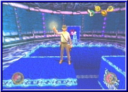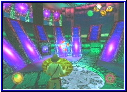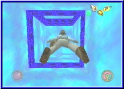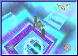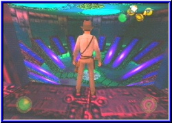 | Nach oben zurück zu Sophia komme ich nicht. Also muß ich mich hier unten irgendwie durchschlagen. Alles ist gemacht als wenn man unter Wasser schwimmt. So ist dann auch die Steuerung hier. Dabei komme ich schließlich sogar auf Außenbereiche, die das ganze hier wie eine Konstruktion begrenzen und wo ich auf kleinen Vorsprüngen ganz normal wieder stehen kann. Laufe ich direkt in die Masse schwebe ich wieder. Sehr schön gemacht. So sehe ich auch auf einer dieser Kanten das es unten am Boden ebenfalls möglich sein muß zu laufen. Denn kleine neue Gegner, fliegend wie kriechend wuseln da unten herum. Nach unten komme ich aber nur über den Bereich innerhalb des Gerüstes durch die Masse. Am Ende jeweils sind 4 Seitenbereiche in die ich erneut neu in diese Masse eintauchen kann und am Ende imposantes zu sehen bekomme. Denn am Ende der 4 Wege erscheinen hinter einer pulsierenden und versperrenden Wand Levelbauten aus bekannten Welten. So z.b. nur der Eingang des Pyramidenlevels wo der kleine Junge herauskam, das Totem von Palawan und der Kerzenständer aus Tian Shan. Geheimnisvoller gehts ja kaum noch. Nur hin komme ich nicht, da immer der Zugang durch eine pulsierende Barriere versperrt ist. Nur hindurchschauen kann ich. Auch grafisch wieder ein toller effekt. Vergleichbar mit den Leveltoren aus Turok 2. Also muß es ja irgendwas geben wie ich da durch komme. Sollte es auch. Denn der 4. dieser Wege führt mich in einen kleinen blauen Raum mit unendlich viel Blitzen und pulsierender Energie. Denn am Ende hier finde ich auf einem Podest ein Tool from Beyhond, so der original Titel. Nehmen kann ich es wie seinerzeit die Machine Teile. Auf einem der C-Buttons. Was ich damit machen kann? Ganz einfach. Nur mit diesem Teil ist es mir möglich die Barriere vor den 3 Wegen zu durchbrechen und ich kann mich direkt dort reinstellen. Schon irre vor dem Pyramideneingang zu stehen und um sich herum nur Materie zu sehen. Beim Kerzenständer schließlich komme ich dann weiter durch ein weiteres dieser Tore und erreiche eine große Halle an dessen Decke ich Sophia im Block wiedersehe. Also habe ich es schonmal bis hierher geschafft. An den Seiten sind hier Türen zu sehen, die ich aber nicht aufbekomme. Vor jeder Tür ist erneut so ein pulsierender Strom zu sehen. Diesmal nach oben, so das ich schwebend die Halle hier nach oben komme. Über einen dieser Ströme komme ich auf einen von 3 langen Trittbrettern und stehe hier genau vor Sophia, der ich aber nicht helfen kann. Gut 2 dieser Ströme habe ich noch. Aber diese Trittbretter hier sollten nochmal sehr interessant werden. |