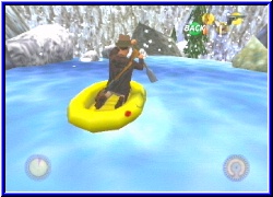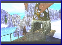 | Ein Schlauchboot! Mal was neues. Keine Frage wo ich das anwenden muß. Also vor an die Wasserstelle und das Schlauchboot benutzt. Ach Du Heimatland. Auch noch selber steuern muß ich das Ding. Was für eine träge Steuerung. Ich bin zwar noch nie in Gebirgsflüssen Schlauchboot gefahren. Aber wow ganz schön schwere Steuerung. Vielleicht ein wenig zu träge. Vor allem weil sich die Kamera immer mitdreht und ich manchmal garnicht sehe wo es hingeht. Aber zumindest geht es Stück für Stück weiter und ein Eingang unter einem Wasserfall ist sichtbar. Schnell rein. Aber nur ein einfacher Schatz ist zu finden. Also weiter und voller Ehrfurcht unterhalb eines Tempels entlang. Links oben mit einer weggedrehten Brücke und rechts ein überdachter Steg. Aber dort komme ich nicht hin und muß weiter schwimmen. Erst kurz darauf kann ich wieder anlegen und wagen von hier einen Blick auf den Tempel, oder was davon noch zu sehen ist. Ich muß hier weiter. Links sehe ich den Fluß weitergehen. Aber Steine versperren den Weg. Ich meine das Level heißt ja auch Tian Shan River. Wer weiß wie oft ich hier noch Boot fahren muß. Also hier nun den Weg im Schnee weiter. Wolfsgeheul zeigt mir wieder das ich nicht allein bin. Kurz darauf komme ich wieder über eine Brücke und stehe vor einem kleinen Tempeltor. Wo bin ich? Dahinter kann ich rechts und links weiter. Wohin zuerst? Gehen wir erstmal nach links. Ja schau an. Ich komme oben auf die Seite mit dem Steg gegenüber dem Tempel. Nur eben die falsche Seite. Drüben sehe ich die Brücke die weggeklappt ist. Darüber steht ein Art Windrad . Das wird diese Brücke wohl antreiben. Das Rätsel scheine ich aber auch entdeckt haben. Denn hier unter einem kleinen Dach steht ein Kerzenständer mit einem Kompaß in der Mitte. Indy checkt das Teil mit Sprachausgabe und ich brauche 4 Kerzen, die hier jeweils einen platz haben. Erst damit werde ich wohl das Windrad aktivieren können. Na klasse. 4 Kerzen in einer Winterlandschaft. Ist doch kein Problem. ;-) Aber sehr mystisch, da hier auch orientalische Musik das ganze untermalt. Von der Stimmung her gefallt mir Indy recht gut bis jetzt. Das fehlen der Hintergrundmusik erzeugt oft das Gegenteil, nämlich die verstärkung der Atmosphäre. Also wieder zurück und den anderen Weg weiter. Wieder geht es durch eines dieser Tempeltore und ich gelange am Ende auf eine Lichtung unter mir und erkenne ein Haus dort. Langsam nach vorne und ich erkenne wieder einen kleinen Funkturm auf dem Dach. Plötzlich werde ich aber entdeckt und ein russischer Soldat nimmt mich unter Feuer. Schnell das Gewehr gezückt und ebenfalls geschossen. So ein Blödmann. Rennt der doch in's Haus. Tut nicht so intelligent. |