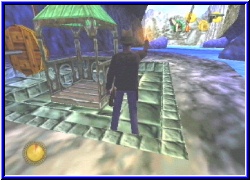 | Aber vorher war auch kein Abzweig. Wie komme ich dort hin? Erstmal jedoch hier weiter und ich komme über einen 2. Weg wieder in die Höhle mit dem Flaschenzug und der Gondel. Wieder nach oben und kann nun ein drittes mal die kalten Gewässer abwärts. Das eine Haus läßt mich nicht los. Also diesmal besonders vorsichtig. Aber etwas neues sehe ich nicht. Dafür schwimme ich diesmal in Richtung erstes Haus um dort den anderen Abwzeig zu nutzen. Doch halt! Schon vorher an 2 Eisensäulen im Wasser entdecke ich einen Seitenweg. Aber ich muß genau richtig gegensteuern um nicht vom Strom des Wassers in die andere Richtung mitgerissen zu werden. Und schau an. Ich komme zu einem weiteren Tempelhaus. Ist das nun das gesehene? Zumindest komme ich hier nicht zur Tür hinein, die ist nämlich zu. Dafür an der Seite. Dort kann man ein Bleiglas zerstören und muß von der Seite hineinspringen. Mal was neues. Drinnen per Schalter öffne ich nun die Haupttür. Beim zurückspringen lande ich erstmal im Wasser und beginne erneut hier. Besser ist das. Denn nur der Fenstersims ist für den Sprung. Muß reichen. Erst beim zweitem mal springe ich wieder auf den gegenüberliegenden Weg und kann nun oben in die Haupttür und hole die 3. Kerze. Oh man es wird. Nur noch eine. Einen Abzweig habe ich ja noch. Wollen wir hoffen das er funktioniert. Ich weiß nicht wie oft ich probiert habe diesen Abzweig zu erwischen 20x bestimmt. Die Strömung dort ist dermaßen stark gegen euch, das ich selbst jetzt noch nicht weiß wie ich dann endlich mal diese Seite erwischen konnte. War wohl auch mal wieder ein Portion Glück dabei. Richtet euch hier auf ausdauernde Momente ein. Aber es geht endlich weiter. Und auch richtig gut. Denn gleich darauf gilt es wieder stark gegenzulenken um nach rechts zu gelangen. Man oh man. Gleich ein bißchen viel. Doch dann am Ende erreiche ich endlich wieder Land. Über mir sehe ich eine Brücke die in den Berg am Ende führt. Vorher gehe ich ebenso in den Berg und erreiche kurz darauf oben die Brücke. Wo geht's wohl hin? Vorsichtig gehe ich in den Eingang. Man weiß ja nie wer hier lauert. Lautes mechanisches Getöse erwartet mich. Schließlich komme ich ein Art Stauwerk in dem einiges an Maschinen arbeitet. Wo ist hier die Kerze? Mehrere Etagen und ich ahne das ich hier einiges an Geschicklichkeit vor mir habe. Nach oben muß ich unbedingt. Die 3 fahrenden Hämmer vor mir haben jeweils ein Brett oberhalb. Dort müßte ich hoch. Einzig das rechts erreiche ich. Aber hier gibts erstmal deftige Kritik. Auf einen schrägen Baumstamm muß ich und von dort auf die rechte Plattform auf dem Hammer. Aber hier ist die Kollisionsabfrage arg verhunzt. Gehe ich zu nah ran laufe ich in den Stamm und er zieht mich wackeln nach unten. Alles andere als optimal. |