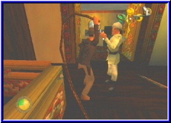 | Na Leute, durchschaut Ihr das Rätsel? Also ein dickes Lob an Factor5 Ein tolles Rätsel. Denn nun wo die Glocke oben ist brauche ich ja noch jemanden der sie schlägt. Ich bin das nicht. Die Statue genau!! Wahnsinn. So wie ich es glaube funktioniert es auch. Drüben wieder das Rätsel mit der Uhr bis sich die Statue dreht. Danach schnell in den anderen Turm gerannt und den 2. Statuenschalter gedrückt und wie durch Zauberhand fegt die Statue über die Brücke und schlägt an. Das gibts nicht. Es erscheint ein alter Meister unter der Glocke. In einer Langen Sequenz mit voller Sprachausgabe erzählt er Indy einiges. Am Ende jedoch soll ihm Indy helfen und ihm etwas bringen. Dafür bekomme ich zunächst einen Schlüssel. Es paßt alles zusammen. Um mir aber hier raus zu helfen muß ich ihm einen bestimmten Schatz bringen. Zunächst aber den Schlüssel unten an der Uhr eingesetzt und ich habe endlich den Weg zum Raum mit der anderen Statue. Allerdings habe ich gesucht wo ich nur konnte. Vor allem die Pflanze scheint mir der Lösung Aufklärung zu sein. Aber ich habe nichts gefunden. Bevor ich vor Wahnsinn wieder in's Pad beiße mache ich erstmal Schluß für heute. Wo auch immer ich hier noch einen Schatz finden soll. Ich hoffe morgen weiß ich es. Aber dieses Level beeindruckt mich. Die Rätsel sind gut, mystisch und hinterher auch logisch. So kann es weitergehen. Bis morgen liebe Leser. |