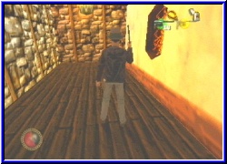 | Auf der einen Seite schlecht, auf der anderen kann man so bestimmte Sprünge weglassen. Links kann ich kurz hangeln und komme so unterhalb auf eine kleine Plattform. Von hier aus zur nächsten und ein zünftiges Danger erhallt von Indy. Bei der nächsten Plattform sehe ich auch warum das so sein könnte. Denn hier ist an der Wand der blanke Stein zu sehen, was bei den anderen nicht ist. Wetten das Teil stürzt ab. Um so überraschender als ich mit dem Sprung diese sogar überspringe und gleich auf der übernächsten lande. Hier geht es um die Ecke. Ein Schlüssel !! Na jetzt kommt ja alles hintereinander. Kaum eingesackt greift wieder ein Spinne an. Also jedesmal wird es kurz hektisch. Auch die erwischt mich. Wieder vergiftet. Also so oft muß ich meine Gift Kits nun auch nicht verbraten. Wieder zurück. Wie nun weiter. Bei dem Medusa Bild sehe ich auch irgendwas liegen. Aber von hier komme ich da nicht hin. Ich muß auf die andere Seite der Halle. Nur von welcher Plattform. Wie sich das gehört versuche ich prompt die falsche und lande unten im Becken. Von hier treibt es mich sofort in den Raum mit der Statue. Den ganzen Weg wieder bis ganz oben. Also sollte ich versuchen keine Fehlsprünge zu machen. Leichter gesagt als getan. Also Factor5. Was Ihr mir in der nächsten halben Stunde für Herzzustände geschaffen habt ist nicht mehr normal. Sprungarie ist noch untertrieben. Ich muß rechts nach oben über einige Plattformen. Wieder zurück zum Anfang, hangeln nach rechts rüber und dort viele Plattformen nach oben und unten. Bei jedem Sprung spielt die Vorahnung mit die nächste Kante könnte nicht meine sein. Hier stirbt man nicht nur im Spiel Tode. Am Ende schaffe ich es tatsächlich da hoch zu kommen zum Medusa Bild. Prompt geht ein Gitter vor dem Altar nach unten und ich befürchte schon wieder schlimmstes. Aber beim umdrehen sehen ich auch hier ein Schlüsselloch. Wollen wir hoffen das der gefundene Schlüssel paßt. Er tut es und ich finde hier ein eigentartiges Teil. Sieht aus wie ein Teelicht..... Teelicht??... Kerze....?? Wir alle wissen wo das hingehört. Kaum genommen werde ich erneut mit russischen Gemeinheiten in Form von Kugeln bombardiert. Aber selbst auf die Entfernung hier funzt das Gewehr. Mal was neues wäre aber auch nicht schlecht. Jetzt aber zurück. Diesmal gewollt das Becken genutzt und wieder hoch in den Raum mit dem Kerzenständer. Kaum öffne ich das große Tor um nach draußen zu gelangen sehe ich 4 Wachen die auf mich zu stürmen. Oh man schnell in Deckung. 2 schaffen es nach drinnen ehe das Tor zugeht. Sie haben hier keine Chance. Bei einem finde ich eine neue Waffe. |