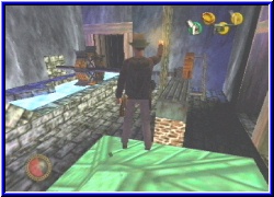 | Eine Schnellschuß Pistole . Sieht ein wenig komisch aus. Erinnert ein wenig an uralt Pistolen. Die anderen beiden müssen draußen dran glauben. Ich nehme aber trotzdem mal lieber ein Med Kit. Man weiß ja nie. Also jetzt aber hoch. Endlich wieder hier angekommen setzt ich nun das Teil hier ein. Oh ein magischer Moment. Das gesamte Teil fährt nun durch den Schlitz nach unten . Dort unten angekommen entwickelt sich durch das Wasser ein kleine Pflanze. Pflanze?? Schnell nach unten. Ich stelle mich vor das Teil am Wasser und kann tatsächlich eine Pflanze an mich nehmen. Indy der Gärtner. Na genau. :-) Nur was mache ich hier in der tiefsten Winterlandschaft mir einer Pflanze. Mr fällt partout kein Ort ein wo ich das Teil benutzen sollte. Vielleicht doch im Turm drüben. War ich lange nicht. Da ist ja auch noch oben die andere Statue. Dort ist aber nichts neues. Außer das ich unten an der Tür von einer Wache begrüßt werde ist auch hier nichts neues. Wieder irre ich ein Wenig umher bis ich, ja was ist das denn. Ein Weg um die Ecke hier unten, der neu ist. War der schon immer da?? Ich will es nicht hoffen. Dann wäre ich damals ganz schön blind gewesen. Ist ja der Wahnsinn. Ein Uhrwerk finde ich hier unten das aber nicht funktioniert. Auch einer dieser blauen Gegner gibt sich hier zu erkennen. Wo isser hin? Er rennt weg und ich sehe ihn nicht mehr. Nicht gerade beruhigend. Dafür kann ich hier eines der vielen Zahnräder bewegen und sehe auch eine Antriebsstange ein Etage tiefer gehen. Ach na klar doch. Am Ende ist auch ein Weg nochmal nach unten. Dort wird wohl auch mein blauer Freund warten. Das hier wieder mystische Hintergrundmusik auftaucht gibt mir auch nicht gerade Ruhe. Also schiebe ich das Zahnrad an die Position die mir logsich erscheint und mache mich dann auf den Weg nach hinten zur Leiter nach unten. Dort komme ich in eine große Halle nach unten und erkenne das Steuergerät für den ganzen Antrieb . Ein Wasserantrieb ist unten . Auch meinen blauen Freund sehe ich hier. Aber wie komme ich hier runter. Das hätte man vielleicht etwas besser lösen können. Man muß öfters mal in's blaue etwas probieren. So auch hier wo mich einfach ein Hangler eine Etage tiefer bringt und dann nochmal und ich stehe unten und muß zunächst 3 der blauen Kerle erledigen. Klasse! Am anderen Ende kann ich mit einem großen Stein diesen Antrieb aktivieren und die Geschichte läuft, Stellt sich nur ein Problem. Wie komme ich wieder hoch? Denn es sind zwar an den Stangen nach oben 2 Plattformen zu sehen. Aber viel zu hoch. An der Seite sind zwar kleine Vorsprünge. |