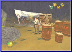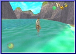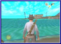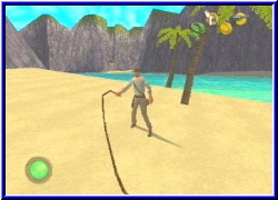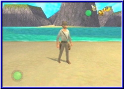| Das ganze muß ich dreimal machen und er ist hin. Gleichzeitig bröckelt ein Eisfelsen an der Seite. Eine Ruhe auf einmal. :-) An dem Eisfelsen muß ich den Urgon nochmal benutzen und komme..., moment den kenne ich doch,.... wieder zum Master. In einem langen Gespräch lehnt er das Teil ab und erzählt mir dafür was über eine mysteriöse Insel im Pazifik. Palawan heißt das Teil. Am Ende öffnet er eine letzte Tür und ich gehe direkt in's Grüne..... Es ist geschafft. Auch dieses level ist abgehakt. Wirklich ein tolles Level, das einiges an Gehirnschmalz verbraten hat. Die Karte zeigt mir das ich in die Gegend der Philippinen muß. In einer weiten Kamerafahrt wird auch die Insel oder besser Lagune gezeigt. Ich fühle mich ein wenig wie in der Schädelbucht. Allerdings wirkt sie hier ein wenig größer. Zumindest rede ich mir das nach einem kurzen Rundblick ein. Dabei entdecke ich Höhleneingänge und kleine Krebse im Sand, die mir aber mal nichts tun. Grafisch sehr gelungen. Klare Sicht und vor allem weit. Nichts stört hier. Geräusche der Küste untermalen die freiere Stimmung als im Tempel. Oh was wird wohl hier warten? Vor allem wo gehe ich zuerst hin? Wichtig zu wissen das ich den Urgon nach wie vor dabei habe. Wetten das der russische Wissenschaftler den gerne haben würde. Irgendwie glaube ich das auch hier die Russen nicht lange auf sich warten lassen. Ob ich schwimmen kann. Denke schon. Aber zunächst interessiert mich ein normaler Weg in die Berge hinter mir. Ist auch das naheste im Moment. Diesmal aber mit gezückter Pistole. Dazu habe ich nun doch schon zu viele Überraschungen erlebt. Ach es ist noch viel besser. Den Weg wo ich per Sequenz hier reingekommen bin ist ja auch noch da. Kurz darauf komme ich auch eine kleine zivilisierte Stelle. Zumindest sehe ich ein Zelt und eine alte japanische Kriegsflagge am Berg. Wieder kann ich mir per Peitsche dort hinüber hangeln und denke noch so bei mir hier gibt es ja neben den Krebsen noch andere friedlich Tiere, bis ich merke das dies ein Krokodil ist und nicht auf Kuschelkurs ist. Ich sage ja , gut das die Pistole schon gezogen war. Hier finde ich einen ersten Schatz und ein Med Kit. Auch Tonnen mit japanischen Schriftzeichen. Ein Skelett zeugt von einer früheren Expedition. Ob noch jemand irgendwo lebt. Irgendwie entwickelt Indy langsam seine Story. Also wieder zurück, denn mehr finde ich hier nicht. Jetzt aber den Weg in die Berge gegangen. Am Ende gelange ich zwar an den Eingang eines Stollens und Indy betont sofort das dort drinnen irgendwas ist, aber rein komme ich nicht. Eine Art Spinnwebe versperrt den Weg. Auch Urgon und das Feuerzeug helfen hier nicht. |