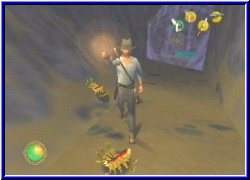 | Kaum hänge ich mal wieder etwas fest kommen die ersten überraschten Mails, ob ich denn nicht eine Lösung zur Hand hätte. Oh das wäre eine Todsünde. Dann brauche ich keine Tagebuch zu machen. Nein, alles was ich hier erreiche oder auch nicht entsteht aus eigenem Gehrinschmalz. :-) Der erste Shocker nach dem anmachen war ein Blick auf die Schatzliste bei der Levelauswahl. 6 von 10. Also so wie ich bei dem Schatz grübele wo da noch was sein soll, so grüble ich genauso wo hier noch 4 Schätze sein sollen. Wie immer bei solchen Tests beschäftigt mich das Spiel auch wenn die Konsole nicht an ist. So kam mir die Idee, nochmal mit der Gondel nach oben zu fahren und die Sprungarie hinter mich zu bringen. Dort hatte ich ja damals das als Teelicht bezeichnete Teil gefunden was schließlich den "Blumenkasten" nach unten beförderte. Aber all die Sprünge waren umsonst. Außer ein gelangweiltes Nope von Indy gibts hier garnichts. Also weitersuchen. Gibt es vielleicht noch einen unentdeckten Abschnitt? Aber ich habe doch nun schon alles durch. Wieder irre ich das Level rauf und runter in der Hoffnung Gevatter Zufall ist mit mir. Es dauert ewig bis ich auf die Lösung komme. Und wieder ...Respekt Factor5. Ein tolles wenn auch schwer zu entdeckendes Rätsel. Auf die Lösung gekommen bin ich aber nicht durch herumlaufen, sondern durch die Blume. Aber nicht so wie ich gedacht habe. Denn bei meinen Suchereien bin ich auch das eine oder andere mal draufgegangen. Dabei habe ich gemerkt das ich die Blume jedesmal verliere. Man sollte auch auf den kleinsten Nuschler unseres Helden hören. Denn wenn er die Blume nimmt nuschelt er jedesmal irgendwas. Endlich verstehe ich es auch. Die Blume braucht Licht um es mal sinnbildlich zu übersetzen. Also muß es irgendwo eine Stelle geben wo Licht erscheint. |