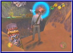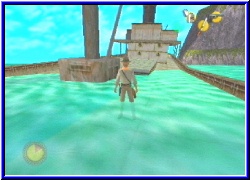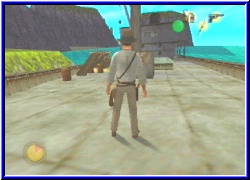 | Was ich beim tauchen um das Schiff mitbekomme ist die Größes des Teils. Wie bei einem Eisberg sieht man wirklich nur einen kleinen Teil über Wasser. Wetten ich muß muß da rein. Das Ufer erreiche ich scheinbar nur vom Schiff aus was meine Vermutung erhärtet. Auf das Boot komme ich vorne am Bug das schräg unter Wasser liegt. Danach sehe ich die Aufbauten am Heck die völlig begehbar sind. Auch oben die Brücke ist frei. Also nichts wie hin. Von wegen Brücke. Erstmal geh ich nach hinten zum aus dem Wasser ragenden Heck. Hier sehe ich einen großen Kran und ein Luke auf dem Schiff. Eine große Kiste sehe ich von der ich auf das Ufer komme. Komisch. Nur 2 Totenpfähle sehe ich da drüben. Moment, was ist das hier unten. Eine kleine Kiste mit einem Zünder für ein japanisches Torpedo. Oh es fügt sich langsam zusammen. Jetzt springe ich aber doch erstmal rüber zu den beiden Pfählen. Denn dazwischen ist eine kahle Stelle. Wer weiß was es dort gibt. Von wegen. Der Sprung ist zu weit um direkt rüber zu kommen. Das wird so nichts Also muß es einen anderen Weg geben. Vielleicht der Kran. Aber bewegen kann ich nicht. Also gehe ich nun doch erstmal auf die Brücke und schaue dort nach dem rechten. Als ich dennoch am Kran vorbei gehe entdecke ich einen seltsamen Kasten an der Seite. Und sieh an. Indy untersucht ihn und sagt das ein Teil fehlt um ihn in Gang zu setzen. Also doch! Aber das Teil werde ich wohl im Schiff finden. Gleich oben nach der Treppe ist eine Tür die aber mit einem Schloß gesichert ist. Plötzlich höre ich eigenartige Schreie.... Oh hallo Gänsehaut. Also von einem Mensch sind die wohl nicht. Auch Mövengeschrei ist es nicht. Klingt ganz komisch, aber fesselnd. Also außen herum um die Brücke und ich komme vielleicht von dort in das Schiff. Keine Chance. Dort ist zwar auch eine Tür. Aber die scheint nur Gimmick zu sein. Immer wieder in Abständen diese Schreie. Aber nur wenn ich hier oben rumlaufe. Das wars. Rein komme ich nicht. Obwohl ich hätte ja nun den Torpedo Zünder. Vielleicht kann ich damit ein Loch in den Rumpf schießen. Sinken kann der Pott nicht. Aber auch am Anfang es Levels hätte ich ja nach einen Weg. Also erstmal zum Torpedo. Nun einsetzen könnte ich den Zünder. Aber Indy bemägelt das der Torpedo in der falschen Position liegt. Wieder könnte der Kran helfen. |
