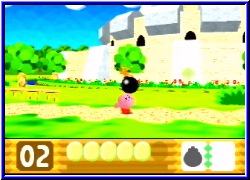 Trifft man z.B. einen der Feuergegner wird aus dem einfachen Feuerball ein Feuergeschoß namens Kirby. Der Reiz des ganzen liegt aber an dem finden der Kombinationen, die eine nicht aufhören wollende Fülle bietet. Kombiniert man z.b. ein Feueritem mit einem Pfeilsymbol so kann Kirby jetzt 3 Feuerpfeile schießen. Das hintereinander und ein Level wird was Gegner angeht wesentlich leichter. Denn neben den normalen Gegnern warten auch immer wieder Zwischengegner. Hat man nicht zur Verfügung sind sie manchmal recht knackig. Hat man eines der Spezialitems geht's in Sekunden weiter. Nur hat man nicht immer das was man braucht. Um vor allem in der Luft oder in Absturzgefährdeten Bereichen nicht der Dumme zu sein kann Kirby sich auch fliegend retten. Für eine bestimmte Zeit kann man ihn durch drücken der A-Taste in der Luft halten. Selbst während des fliegens kann man nun die Spezielfähigkeiten nutzen, was man auch oft muß. Nur die richtige Kombination und Anwendung hilft euch überhaupt manche Kristalle zu erreichen. Man muß aber auch erstmal alle Fähigkeiten gesehen haben um zu wissen welche Kombination zum Erfolg führt. Das ist faszinierend gemacht und macht sehr viel Spaß. Dazu kommt das Kirby trotz seines Knuddellooks nicht einfach ist und mehr als genug Situationen bietet um seine Energieleiste zu leeren. Hat man aber die richtige Fähigkeit gefunden kann es sehr leicht sein. Das ist aber genau der Reiz des ganzen und kann Stunden fesseln. Nicht umsonst kann man immer wieder jedes Level betreten. Denn es gibt noch genug andere Situationen dafür. Hier kommen nun die anderen Charaktere in's Spiel. In einigen Leveln gilt es Bob zu fahren oder schwimmend voran zu kommen. Schwierigkeit ist das man jetzt keine Zeit zum schauen hat sondern sich alles bewegt und Ihr mit dem Bild mitgehen müßt. Dabei übersieht man schnell mal einen Kristall. Bein fahren mit einer Lore müßt Ihr im richigen Moment auch noch springen und könnt während des Fahrens verschiedene Wege wählen. Logisch das man da nicht immer den richtigen nimmt. Verliert Kirby einzelne Punkte der Energieleiste kann er diese durch kleine Süßigkeiten wieder auffrischen. Findet er eine Tomate wird seine Leiste komplett geheilt. Continues hat man in dem Sinne unendlich. Denn sind alle Leben einmal weg beginnt man immer mit 2 neuen Leben in dem Hauptlevel das aktuell anwählbar ist. Aber auch nach einem geschafften Level ist noch nicht Schluß. Jetzt erwartet euch jedesmal ein kleines Minispiel .