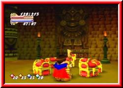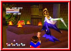 | Ein paar Magiepunkte finde ich hier. Wieder hinein komme ich in einen Raum der ganz nach meinem Geschmack ist. Soviele Item Kisten habe ich auch noch nicht auf einem Haufen gesehen. Auch ein paar Magiepunkte finde ich hier. Allerdings habe ich auch ein komisches Gefühl. Soviele Items. Da wartet doch jemand auf mich. Aus diesem Raum komme durch Seitengänge wieder ins freie wo ich wiederum um die Pyramide laufen kann. Nach einer Weile bin ich auf der anderen Seite und stehe erneut vor einem großen Portal. Wieder Treppen nach oben. Und da steht der Hausherr. Allerdings ist es nicht Fargo, wie vermutet sondern ein weiterer Zauberer namens Lavaar. Dieser erzählt mir das er hier im Exil leben muß und erst wieder frei ist wenn Mammon besiegt ist. | ![]() |