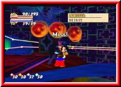 | Mittlerweile habe ich wieder einige Versuche hinter mir, die allerdings alle nicht erfolgreich waren. Und da hat Beigis nicht mal ein besonders scharfes Auge. Denn auch er verfehlt mich ab und zu. Aber es klappt einfach nicht. Ich trauere ein bischen meinen Healer Items nach die ich im Kampf mit Guilty verloren habe. Die würden mir hier gut helfen. Nach abermaligen Niederlagen fasse ich den Entschluß nochmal am Speicherpunkt in Brannoch Town zu beginnen. Ich muß zwar nochmal durch das gesamte Castle. Aber egal. Ich will versuchen wenige Items zu verlieren, jetzt wo ich weiß was auf mich zukommt. Ich nehme jetzt auch jeden Kampf an um meine HP Anzeige zu pushen. Endlich stehe ich wieder vor Guilty. Das muß doch gehen hier weniger zu verlieren. Und siehe da. Es gibt wirklich eine Taktik. | ![]() |