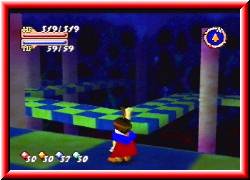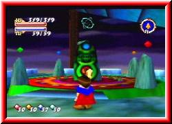 | Was jetzt kommt ist irre abstract. Ich laufe durch verschiedene Locations die alle keine Wände oder Decken haben. Farbenspiele an den Seiten, riesige Tempel und jeweils zwei Türen. Durch die jeweils zweite Tür gelange ich an immer abgedrehtere Orte. Bei einem fühle ich mich wie in Mario Kart auf dem SNES. Hier sieht's aus wie im letzten bunten Rennen ohne Seitenbegrenzungen. Riesigen weißen Feen oder Drache ohne Flügel begegne ich hier. Unheimlich!! Dann gelange ich in einen kleinen Wald. Aber wiegesagt. Alles ohne Begrenzungen.Nachden ich hier ewig von Ort zu Ort gelaufen bin ohne etwas besonderes zu finden gelange ich nach einer freistehenden Tür in ein Haus. Hier wartet Epona auf mich und sagt mir das dies der letzte Ort vor Mammon ist. Ich speichere erstmal. Leute ich habe mal kurz geschaut was danach kommt. Ihr dürft gespannt sein. | ![]() |