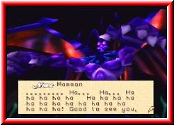 | Eine gewisse Ähnlichkeit ist vorhanden. Er lacht mich aus und freut sich sogar mich zu sehen. Es ist Zeit für den Tag der Abrechnung...........................!! Ihr wollt wissen was nach Mammon kommt. Nun wenigstens ein Geheimnis sollte nach dem Tagebuch noch bleiben. Bevor ich zu meinem Fazit komme möchte ich Euch sagen das mir die letzten knapp 3 Wochen sehr viel Spaß gemacht haben Euch dieses Spiel vorzustellen. Ich hoffe Euch hat diese Art eines Spieletests ein wenig gefallen. Mein Fazit zu Quest 64. Wer schon Entzugserscheinungen bei Warten auf Zelda 64 hat kann hier ohne Probleme zugreifen. Momentan sollten allerdings nur die Englischversierten unter Euch zuschlagen da die deutsche Version erst im September erscheint. Laut Konami dann aber mit deutschen Bildschirmtexten. | ![]() |