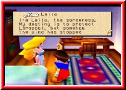 | Denn vielleicht führt ja ein Weg dann zu den Blue Caves. Also gehe ich wieder hoch. Diesmal die Stufen ganz nach oben und treffe eine sehr interessante Person. Leila hießt sie und ist die Zauberin von Larapool. Sie ist diejenige die durch einen magischen Zauber Larapool beschützt. Sie bittet mich nun um Hilfe. Alleine kommt sie gegen die Mächte des Bösen nicht an. Und alles hat mit dem gestoppten Wind zu tun. Wieder unten treffe ich auch Shannon wieder. Endlich wieder ein klarer Hinweis. Ich sollte mich unbedingt in die Stadt Hormoon begeben. Diese ist auf der Karte ganz unten. Allerdings lasse ich hier eine Menge Rätsel zurück. Aber ich denke ich bin bald wieder hier. Also gehe ich los und gelange wieder an die Weggabelung. Nur wie komme ich zur Stadt Hormoon. Ich studiere die Karte und sehe außen herum einen Weg. | ![]() |
