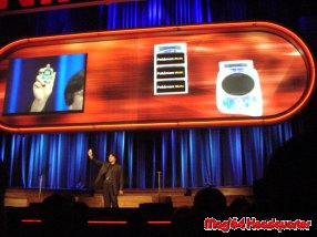 Die kleinen Plastikkärtchen die jeder Besucher bekam wurden immer wieder per Barcode Streifen abgescannt. Jedesmal wenn man vor die Tür wollte um sich mal seinem Laster zu widmen mußte man dieses Prozedere immer wieder auf’s neue wiederholen. 10:30 wurde die Masse an europäischen Journalisten eingelassen, wobei bis 12:00 Zeit ein kleines Museum zur Nintendo Geschichte und ihren Produkten zu besichtigen war und um kleine Snacks und Getränke einzunehmen. Zu dieser Zeit fanden sich auch die ersten Gesprächspartner. Grüße an Matthias Mirlach, Frederik Berg und Oliver Schultes. Ab 12:00 Uhr sollte die große Hauptveranstaltung losgehen, was man dann auch am voller werdenden Gang vor dem Eingang zur Halle merkte. Als es reinging nahm man in einem Art Kinosaal platz und wartete gespannt der Dinge die da kommen sollten. Auch hier war eigentlich Foto und Filmverbot, an das sich nur die wenigsten hielten. Ein bißchen übertrieben ist das ganze irgendwann schon. Aber na gut. Vorne war die große Bühne auf der zunächst ein überdimensionales Nintendo Logo prangte. Ein riesen Kompliment muß man Nintendo für den Rahmen vor und nach der eigentlichen Veranstaltung machen. Denn als die Show begannt sorgte ein Gospel Chor für zünftige Stimmung. Tolle Truppe, die die anwesenden Journalisten begeisterten. Danach folgten nach und nach die wichtigen Nintendo Leute, wobei man vor allem auf die Reden gespannt war. Zunächst begann David Gosen von NoE mit der Aufzählung der Erfolge Nintendo’s in Europa, wobei er alle Facetten jedoch ohne GameCube aufzählte. Dazu wurden auf 2 über der Bühne befindlichen Bildschirmen verschiedene Trailer gezeigt. Die eigentlich GameCube Show begann mit Mr. Iwata, der schon auf der Spaceworld gesprochen hatte und hier ebenfalls zugegen war und somit ein wenig die Bedeutung des europäischen Marktes würdigen wollte. Was ihm aber nur teilweise gelang. Denn die wichtigste Info wann und zu welchem Preis der GameCube nun bei und erscheinen soll blieb erneut im verborgenen. Im Gegenteil, es wurde sogar noch einiges an Verwirrung draufgelegt. Denn mittlerweile heißt der Termin Spring 2002, was die ersten 6 Monate eines Jahres beschreibt. Auch enttäuscht war ich von der Präsentation der GameCube Titel selber. Wenn ich die Spaceworld als Vergleich heranziehe, so hätte man zumindest die gesamten Trailer der Spiele zeigen können, was man aber nicht machte. Gerade die SEGA Titel, Soul Calibur 2 und andere hätte man als Trailer zeigen können. |
