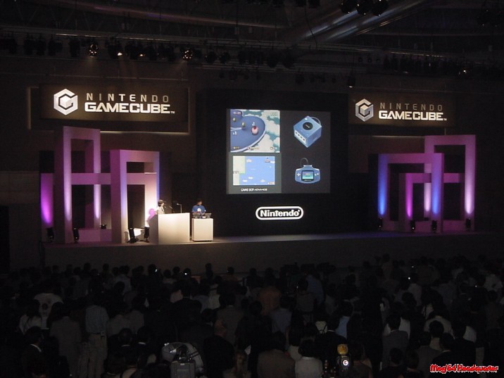 Auch war Shigeru Miyamoto auf der kleinen Pressekonferenz mit ihm ungewöhnlich gelassen und schmunzelte sehr viel auf die Fragen nach dem neuen Zelda. Man probiere viel aus und das sei das momentane Ergebnis. Ich glaube eher das Nintendo die Reaktionen abtesten möchte auf die verschiedenen Stile. Das finale Zelda ist das nicht. Dazu ist es viel zu früh. Nicht umsonst hat man den Termin weit an das Ende 2002 verlegt. Das ist keine Entwarnung für die, die nach dem alten Zelda lechzen, aber zu früh um das Spiel von vorneherein abzustempeln. Nach dieser Präsentation merkte man sofort das in der Halle 2 Meinungen entstehen. Es wurde viel gemurmelt und kleinere Diskussionen entstanden. Allerdings sorgte Shigeru Miyamoto gleich danach für neue Aufmerksamkeit. Denn es wurde ein Tisch mit GameCube’s und einem Mitarbeiter auf die Bühne gestellt und schnell wurde klar das der GBA weit mehr ist als nur ein Ersatz Controller für den GameCube. Wie schon immer vermutet wurde werden spezielle Spiele den Screen auf dem GBA nutzen um Informationen für den Spieler anzuzeigen die sein Gegenüber oder menschlicher Gegner nicht sieht. Weiterhin kann man auf dem GBA einen Charakter in einem Spiel pushen und im GameCube weiterspielen und zurück. Gezeigt am Beispiel von Animal Forest das dieses Feature unterstützt. Aber es wird noch besser. Die Tilt Technologie ist vielen bekannt unter der Möglichkeit den Charakter in einem GBC Spiel wie bei Kirby durch die Bewegungen des GBC zu steuern. Das wird nun auch auf dem GBA möglich sein. Mit speziellen Spielen sogar auf dem GameCube sichtbar. Dabei wird sogar die Technik des GameCube genutzt was das ganze wieder eine Spur effektiver macht. Auch hier zeigte das ganze Shigeru Miyamoto anhand einer speziellen Kirby Version. Schon irre wie sich das entwickelt hat. Hier hat Nintendo erneut seine Innovationsfreudigkeit unter Beweis gestellt. Im Anschluß wurden weitere Trailer gezeigt die unter anderem PSO, Fifa 2002, 1080 Snowboarding GC, Rune oder Soul Calibur 2. Für die Gäste gab es aber durch einen kleinen Kasten mit Kopfhörern die englische Überetzung der Redner. Ich muß sagen ich habe öfters Gänsehaut gehabt bei der ganzen Präsentation. Man hat es verstanden vor allem Effektvoll die Zuschauer gespannt zu machen. Die Spiele und vielen Filme taten Ihr übriges dazu. So verging die Dreiviertelstunde dann irgendwie wie im Fluge und kaum eine Kamera hatte eine Pause gemacht. Außer meine um auch noch ein paar Fotos zu machen. ;-) Im Anschluß konnte nun eine knappe Stunde gespielt werden was die Stände hergaben. Wave Race läßt mich einfach nicht los. Dieses Game ist so hammerhart, das man jedesmal die Zeit vergißt. Man oh man, noch drei Wochen dann geht’s endlich selber in die Fluten. :-) |