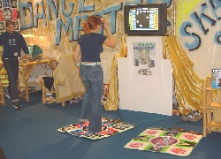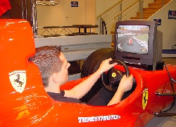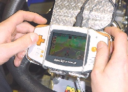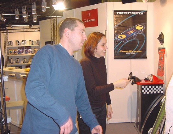 Eher für die jüngere Zielgruppe gedacht sind Titel wie das Happy Hippo Spiel oder das neue Schlümpfe Spiel. Unterschätzt diese Titel aber nicht. Sie verkaufen sich laut Infogrames sehr gut, was sie ja zur Infogramy Aktion und der weitergehenden Unterstützung des GBC veranlaßt. Nächster Anlaufpunkt war Guillemot, die an ihrem Stand mein Herz sofort höher schlugen ließen. Nicht nur wegen der schönen Frauen, sondern wegen eines Ferrari Cockpits. Einsteigen und wohlfühlen. Für mich als Lenkradfan der Traum. Jens testete mal kurz Zubehör für die Konkurrenz und zeigt Stehvermögen auf dem Snowboard. Doch nicht nur das zog uns an den 2 Tagen immer mal zum Guillemot Stand. Vor allem die beiden Guillemot Frontfrauen Anette und Anja waren dafür verantwortlich. Was hier wir auch deutlich wurde wie auch bei den anderen Zubehör Firmen war die Gute Stimmung in Bezug auf Nintendo's neue Geräte. Vor allem der GBA hinterläßt momentan überall gute Stimmung. Was man auch bei Zubehörhersteller Blaze merkte, die dem GBA Release sehr positiv entgegensehen. Aber auch aktuell haben sie noch ein feines Gerät in petto. Der MPXchanger, der DexDrive kompatibel ebenfalls Speicherstände auf Festplatte sichern läßt. Diesmal sogar Batteriegestützte Savegames der GB Module. Und auch für Zukunft wird der kleine Kasten interessant werden. Tests zum Gerät wie auch zu vielen anderen Soft & Hardwareprodukten wie auch Previews gibt es in der nächsten Zeit nachzulesen. Ebenso neue vorgestellt wurde der Xploder Fun für den GBC. Eine abgespeckte Variante im flippigen Gelb der ohne InGame Trainer daherkommt und mit fertigem ROM käuflich ist. Dafür kostet er mit 49,95 auch weniger als der große Bruder. Mittlerweile die verschiedensten Kaffeesorten über den Tag getrunken gönnten wir uns dann eine ganze Weile an allen möglichen Spielen an den zahlreichen Stationen. Schließlich wollen wir euch ja auch ein bißchen was über die Spiele schreiben. So zockten wir für euch das gesamte GBC und N64 Lineup. Mickey's Speedway USA hat mir persönlich sehr gefallen. Vor allem die vielen Dinge zum freifahren machen Appetit auf mehr. Das ganze gepaart mit einer feinen Driftsteuerung lassen ein gutes Spielvergnügen erahnen. Paper Mario ist ein ungewöhnliches Spiel. Das 2D Spiel ist eine Mischung aus Jump'n Run und Rollenspiel. Zwar in 2D gehalten kann man trotzdem in des Bild laufen, was zunächst ungewohnt wirkt. Immer wiedergilt es Rundenbasierte Kämpfe zu absovieren, die aber relativ einfach gehalten sind. Zumindest kommt das Spiel nun auch in PAL. |