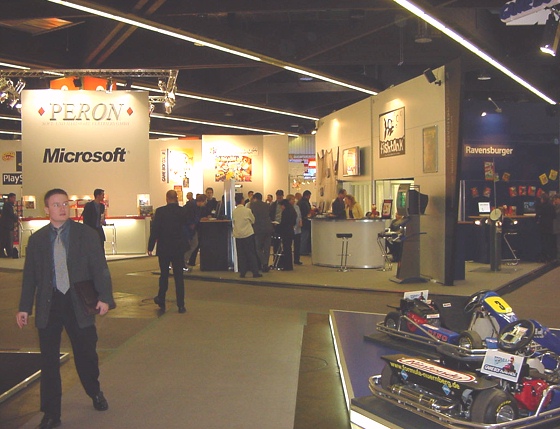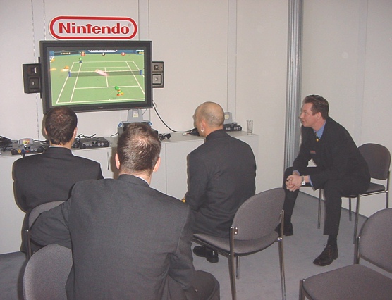 Denn als Fachmesse ist sie nicht so überlaufen wie eine Besuchermesse. Ich glaube hätte ich noch in ruhe Time Trial Zeiten gefahren, könnte man einen Test locker schreiben. Denn alle Cups waren anwählbar und man konnte sich genüßlich austoben. Der erste Termin war wie immer Nintendo selbst. Hinter dem Stand waren die Katakomben mit den immer wieder genannten Hinterzimmern. Vorteil durch die Reisen und die gute Zusammenarbeit ist das man sich mittlerweile gut kennt. Nach ein paar Sprüchen hin und her saßen wir beim ersten Kaffee des Tages und der erste Small Talk war in vollem Gange. Wir hatten viele Fragen und es kamen doch einige interessante Antworten. Zumindest sind die wichtigsten eurerseits beantwortet. Vieles ist leider nach wie vor nicht entschieden oder geht über die Schreibtische der Japaner. Gerade was den Gamecube angeht bleibt die E3 das Maß aller Dinge. Erst dort wird vor allem was Releasetermine angeht Klartext gesprochen. Interessant war das Gespräch mit Nintendo's Marketing Mann Paul Ashcroft, der auch für die Website und das Club Heft einiges zu erzählen hatte, wobei Ihr die wichtigsten Dinge in den News erfahren habt. Gefreut haben wir uns auch über ein erneutes Treffen mit Patrick Nagel, der fachlich und menschlich ein Klasse Typ ist. Gespräche mit ihm und man möchte eigentlich nur noch an eine Konsole. :-) Was wir in einigen Sessions Excitebike auch getan haben. Das die Jungs nicht nur Anzugträger sind merkt man wenn man sie losläßt. Ihr solltet mal sehen was passiert wenn Nintendo Jungs anfangen Mario Tennis zu spielen. Steif und trocken ist hier keiner. Um die Sache perfekt zu machen ergab sich der Zufall das ein Fernsehteam einmal 4 besetzte Karts in Action sehen wollte. Das ließen wir uns nicht nehmen und meine Wenigkeit trat also an gegen die geballte Nintendo Power und gewann. Ein schelmisches Grinsen konnte ich mir nicht verkneifen. Dafür habe ich eine Party Mario Tennis dankend abgelehnt. Ich glaube da hätte ich wohl die Klatsche meines Lebens bezogen. :-) Auch wenn man den ganzen Tag hätte hier sitzen können. die Messe bot natürlich noch reichlich andere Dinge. Auch wenn die Abwesenheit z.b. von Konami, THQ oder Ubi Soft schmerzte gab es bei den anwesenden genug interessantes. Bei Infogrames wurde uns Alone in the Dark gezeigt, das grafisch Eindruck hinterläßt. Auch Looney Tunes Racing ist ein vielversprechender Titel. Mit April sind beide auch nicht so weit weg. Desweiteren konnte man die Rache vom Mars anspielen, die sich spielerisch kaum verändert hat zum Vorgänger, aber nach wie vor Spaß macht. |