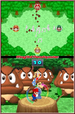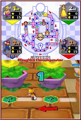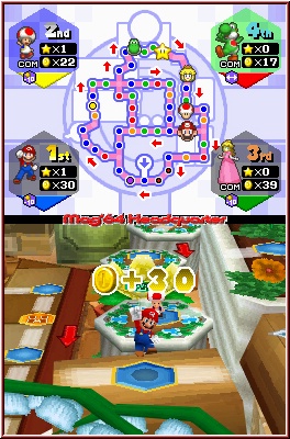 Vier Charaktere, ein Spielbrett, ein sechsseitiger Würfel - Zutaten, die einen bestimmten Serienhit aus dem Hause Nintendo seit vielen Jahren prägen und bis heute in das insgesamt zehnte Abenteuer begleitet haben. Die Rede ist von der "Mario Party"-Serie, deren Zutaten nicht nur simpel sind, sondern auch überaus große Erfolge feiern konnten. Acht Teile umfasst die Serie auf Nintendos Heimkonsolen bislang, ein Ableger - der bis dato fragwürdigste - erschien für den Game Boy Advance, der aktuellste und ehrenwerteste ist seit kurzer Zeit für den Nintendo DS erhältlich. Auch unser Test beschäftigt sich mit Letzterem und zeigt, dass die Serie selbst heutzutage noch nicht in die Jahre gekommen scheint. Ein wenig Feinschliff, leicht erlernbare Spielinhalte und ein großer Umfang gereichen dem Genre-Primus zum erneuten Hit. Blickt man allein auf die Verkaufszahlen, weiß man, wovon wir schreiben... Menus und die Story.... Mario als Zugpferd, sein Bruder als tollpatschiger Verfolger sowie eine ganze Horde weiterer, Nintendo-typischer Spielcharaktere sind das Salz in Nintendos Spielbrett-Suppe, die Würze eines der erfolgreichsten Multiplayer-Spiele überhaupt. Auch wenn die Riege an spielbaren Figuren nicht so umfangreich ausfällt, wie auf den Heimkonsolen, kann sich das Spielerfeld sehen lassen. Vier Mitspieler treffen sich auch dieses Mal im Kampf um Münzen, Sterne und einen großen Batzen Ruhm. Was deutlich wird, ist die Tatsache, dass die in "Mario Party DS" enthaltenen Minispiele noch zugänglicher sind, als in den vergangenen Serienteilen und meist mit einem einzigen Knopf oder dem Mikrofon bestritten werden dürfen. Eine kurze Anleitung reicht aus, um das Prinzip zu erfassen, der Rest ist dann meist eine Sache des Geschicks sowie des Glücks - ein Brettspiel eben. Klassisch wie der simple Aufbau eines Brettspiels ist auch die ureigene Nintendo-Story ausgefallen. Ein Himmelskristall knallt vor Marios Latzhose (oh, wie einfallsreich!), gleichzeitig schmeißt Bowser eine fette Entschuldigungsparty für seine ärgsten Kontrahenten (oh, wie untypisch!), schrumpft diese, fies wie er ist, auf Minimalgröße (oh, wie klar!) und stiehlt das rare Himmelsstück (oh, wie unverschämt!). Oh, wie logisch das weitere Vorgehen des Minitrupps nun wohl sein wird: Himmelskristalle suchen, Bowser fertig machen und eine eigene Fete werfen! Bei diesem hehren Vorhaben wünschen wir Euch viel Spaß! Technik und Gameplay.... "Mario Party DS" ist ein Titel, der nicht nur zu einem Einzelspiel einlädt, sondern vor allem in der Gruppe aus bis zu vier Leuten zur erfüllenden Unterhaltungsoffenbarung wird. Einige Modi hat man sich bei Nintendo ausgedacht, die auch auf längere Sicht für Motivation sorgen dürften. Dennoch ist der Titel im Singleplayer-Modus deutlich schwächer ausgefallen, als im Gruppenspiel. Die "Mario Party"-Serie war schon immer auf konkurrenzlastige Gruppendynamik ausgelegt, nur in geselligen Partien von bis zu vier Freunden konnte man den ultimativen Spielspaß-Flash erleben. Bis heute hat sich an dieser Tatsache nichts geändert - vorneweg soviel: eine Spielkarte reicht für alle Spieler aus. Auffallend sind die übersichtlicheren Spielbretter der Handheld-Umsetzung. Fünf Bretter an der Zahl sorgen anfangs für interessante Duelle, wobei jedes Spielbrett durch eigene, charakteristische Auffälligkeiten zu überzeugen weiß. Ob geskriptete Riesenfass-Rollerei im Donkey Kong-Level oder überraschende Wendungen auf Bowsers Flippertisch - jedes Brett bietet seine gewissen Eigenheiten, gemein haben sie alle, dass sie schneller beendet werden können als vergleichbare Levels auf den TV-basierten Konsolen (Nintendo 64, Gamecube, Wii). Um beispielsweise das "Abenteuer", den eigentlichen Story-Modus hinter sich zu bringen, bedarf es einer erfolgreichen Reise über alle fünf, höchst unterschiedlich zu verortenden Spielbretter, wobei Ihr immer als Sieger aus der jeweiligen Mission hervorgehen müsst - einschließlich eines gelungenen Minispiel-Kampfes gegen den jeweiligen Endgegner! Die generellen Spielregeln sind leicht verständlich und schnell erklärt: per Würfel bewegt Ihr Euch entsprechend der Augenzahl auf dem Brett vorwärts, sammelt Münzen auf Feldern sowie in Minispielen, um Euch Sterne leisten zu können, die wiederum als die höchste Auszeichnung im Spiel angesehen werden. Wer nach der festgelegten Anzahl an Runden Erster ist, geht als Sieger vom Brett. Gelingt Euch dies nicht, gilt es ein weiteres Mal dem jeweiligen Ort einen Besuch abzustatten. Auf den Spielbrettern warten allerlei abwechslungsreiche Dinge auf Euch, sei es ein Item-Shop, in welchem Ihr Gegenstände käuflich erwerbt, die wiederum als sinnvolle Objekte während Eures Zuges zum Einsatz kommen (zusätzliche Spielwürfel, direkter Weg zum Stern, Finden versteckter Bonus-Blöcke, etc.), seien es Trick-Felder, die Ihr auf dem Spielbrett nach Lust und Laune verteilen dürft. Trick-Felder klauen Gegnern Sterne, stibitzen eine Handvoll Münzen oder lassen die Plätze einzelner Charaktere untereinander austauschen. So gibt es immer wieder unvorhersehbare Momente, auch wenn der eigene Sieg bereits so sicher schien. Im letzten Augenblick kann sich das Blatt durchaus also noch wenden! Wesentlich sind die Felder, auf denen Eure Spielfigur landen kann, denn oftmals entbrennt ein heißes Kopf-an-Kopf-Rennen, das durch ein paar Münzen theoretisch entschieden wird. Macht Ihr beispielsweise auf einem blauen Feld Halt, gibt es drei Münzen auf dem Konto gutgeschrieben, ein rotes Feld subtrahiert besagte Anzahl. Ereignisschalter lösen unvorhergesehen Dinge aus, ein Duell-Feld fordert einen Wettstreit zwischen zwei anwesenden Teilnehmern. Das Bowser-Konterfei lässt hingegen nichts Gutes erahnen und prophezeit, dass Marios größter Konkurrent mit einigen diebischen Ideen am Werke ist - ab und an wird ein weit zurückliegender Mitspieler mit ein paar Zusatzmünzen belohnt (oh, wie großzügig!). Ist eine Runde schließlich vorbe