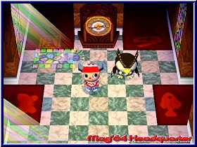 Da Ihr mit der Zeit reichlich und täglich Post bekommt füllt sich dieser Teil sehr schnell. Aus diesem Grund könnt Ihr neben einer Vernichtung der Briefe diese auch speichern auf der Post. 160 Briefe kann man so ablegen und für die Nachwelt festhalten. Die Post die man bekommt wird mit der Zeit auch immer wichtiger. Unter anderem bekommt man nach einer gewissen Zeit täglich Post von der Organsiation HRA. Diese ist nichts anderes als eine Jury die jeden Tag euer Haus und was drin steht bewertet. Dabei lassen sie auch reichlich Hohn über den Spieler. Je mehr teure und größere Möbel Ihr besitzt um so besser wird das ganze. Wobei das Ambiente ebenfalls wichtig ist. Alte Barock Möbel in einem futuristisch gestyltem Haus erregen den Zorn der Jury. ;-) Es gibt hunderte an Möbelstücken aller Arten und allem möglichen Inventar im Spiel. Man kann es kaufen, findet es oder bekommt es durch das Lösen von Aufträgen der Bewohner seiner Stadt. Es gibt immer was zu tun. Auch etwas das dem Spiel richtig guttut. Hier kommt z.b. ein sogenannter Müllplatz zum Zuge. Jeden Tag auf's neue liegen Dinge hier drin, die andere Bewohner weggeworfen haben. Sei es Kleidung, Möbel oder auch einfach nur Briefpapier das man so nicht kaufen muß. Und so langsam beginnt beim Spieler der Ansporn das schönste Heim im Universum zu haben. ;-) Was aber durch einen zweiten Grund erst richtig passiert. Denn habt Ihr eure Schulden für das kleine Haus bezahlt geht's erst richtig los. Nook, der nun scheinbar den Zahlemann seines nächsten Benz gefunden hat bietet euch ein größeres Haus an. Was dann gleich mal 150.000 kostet, die man wieder nur durch Schulden auftreibt. Aber es paßt nun mehr in das Haus, die Wertung und das Ansehen steigt. Mittlerweile hat es der kleine Matthias zur dritten Stufe geschafft. ;-) Dafür bin ich auch der größte Schuldner im ganzen Land mit 400.000 Bells. Aber auch der Mann mit dem größten Haus. ;-) Warum ich das so betone. Auch wenn ich das Spiel allein gezockt habe sind Jens und Kilian natürlich mit von der Party. Hat auch Gründe. Hier habt Ihr mal die Bilder aller drei Häuser um mal zu sehen wer wohl am besten lebt. (Matthias, Jens und Kilian) Immerhin hat Kilian ein Klo und Jens eine Hantelbank. ;-) Dafür besitzt meine Wenigkeit 2 NES Konsolen. Das Mag64 ist überall. Etwas das die technische Innovation des Spiels sehr gut zeigt. Diese NES Konsolen erlauben es auch die alten Klassiker 1:1 auf dem GCN zu spielen. Desweiteren könnt Ihr diese Spiele per GCN/GBA Kabel auf den GBA überspielen. Dabei braucht man kein Spiel. Es wird live in den Speicher geladen, man zieht das Kabel vom GBA ab und spielt nun auf dem GBA das Game. Und schon kommt der e-Reader in's Spiel.