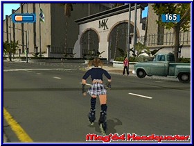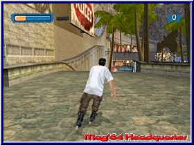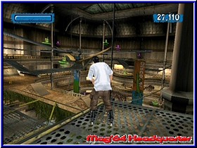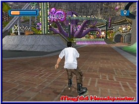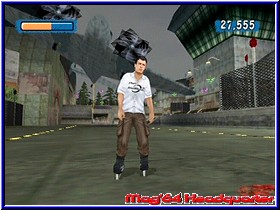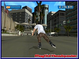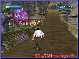 Zum einen kommen neue Aufgaben hinzu wenn man bereits etwas erledigt hat oder man findet im Spiel mit einem Symbol (Skateschuh, Münze...) gekennzeichnete Stellen, die durch Knopfdruck in die Liste der Herausforderungen aufgenommen werden. Oftmals trifft man auch einfach auf Fotografen oder normale Passanten, die gewisse Angebote in petto haben. Um einen Fotografen zu beeindrucken, verlangt er meist einen sauber ausgeführten Transfer von der einen Rampe zur anderen oder er ist heiß darauf einen Skate-Trick vor die Linse zu kriegen, den man möglichst fehlerfrei ausführen sollte. Ebenfalls gibt es die guten alten Punkteaufgaben im Stile von: "Sammle 1.000.000 Punkte"! Das hört sich zwar jetzt viel an, man muss jedoch hinzufügen, dass es bei Aggressive Inline keine Zeitbeschränkung à la Tony Hawk gibt. Nun fragt man sich was denn nun die Schwierigkeit darstellt. Links oben am Bildschirm befindet sich das sogenannte "Juice Meter". Dieser Balken darf sich nicht dem Nullpunkt entgegen bewegen, sondern sollte durch stattliche Tricks und Kombos immer frisch aufgefüllt werden. Um diese Sache zu beschleunigen, sind über das ganze Level hinweg Power-Ups für das "Juice-Meter" verteilt. Diese gibt es in drei unterschiedlichen Farben, die alle ein gewisses Balkenstück auffüllen. Sollte man dennoch mal die kritische Stelle verpassen an der der Balken die Nullmarke erreicht, hat man die Möglichkeit 100.000 bereits erspielte Punkte zu opfern und dadurch im Level bei gleichem Levelfortschritt weiterzumachen. Des weiteren sind in jedem Level diverse Päckchen versteckt, die die "Juice"-Anzeige um ein bleibendes Stück erweitern. Man sollte auch die Augen nach versteckten "Spezialtricks" offen halten, die es dem Spieler ermöglichen richtig heftige Punktekracher einzufahren. Um ein Level aber wirklich auf Herz und Nieren zu spielen, sollte man die gut versteckten Levelschlüssel (pro Level gibt es einen) ausfindig machen. Jene Schlüssel sind an besonderen Stellen zu finden, die nicht ohne weiteres zu erreichen sind. Hat man schließlich doch einen der seltenen Schlüssel in seinem Besitz, eröffnet dieser dem Spieler bislang verschlossene Levelbereiche, die die Levels im Umfang meist verdoppeln. Somit wird ein sehr großes Museum zu einer Art "Deutschem Museum", das in seinen Ausmaßen wirklich riesig ist. Für den Spieler bietet dieser Umstand nur Vorteile, da es immense Möglichkeiten gibt, das Level auszureizen. Egal ob man im Fabrikgelände auf einem kleinen Fischkutter umhergrindet oder ein altes Wikingerboot im Museum als Rutschbahn missbraucht. Die zu "missbrauchenden" Utensilien gehen locker in die Hunderte: Eine riesige Achterbahn lädt am Jahrmarkt dazu ein, sich an den Waggons hinterher ziehen zu lassen. |