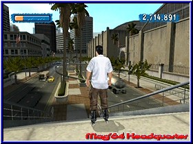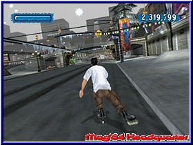 Oder der Riesenoktopus spreizt seine Arme um darauf Dutzende von Kunststücken zu vollführen. Ich weiß wirklich nicht wo ich anfangen soll, die Vielfalt an Möglichkeiten ist wirklich ungeahnt. Auch die Aufgabenstellung innerhalb der Levels ist dermaßen abwechslungsreich, dass beinahe auch nicht das Fünkchen eines Langeweileschimmers zum Spieler hervordringt. Neben den typischen Punkteaufgaben haben die Entwickler aus dem Vollen geschöpft und verlangen vom Spieler solch waghalsige Angelegenheiten wie das Grinden auf einer Riesenradmutter oder die Zerstörung eines Gastanks. Damit komme ich auch zu den zahlreichen Zwischensequenzen innerhalb der Spielgrafik. Ein Beispiel hierfür wäre der Gastank: Bringt man diesen zur Explosion, ist das Resultat einerseits verheerend, andererseits gut für den Spieler. Durch den Druck verändert sich die Landschaft im positiven Sinne für den Skater. Abdeckungen fallen herab und Materialien fallen so zu Boden, dass sich neue Möglichkeiten bilden, Tricks auszuführen. Zu der meist riesigen Aufgabenanzahl, die bis in die Dutzende geht, kommt durch die Vielzahl an Skriptszenen ein besonders angenehmes Gefühl zustande, dass einerseits Abwechslung bietet, andererseits das Spielgeschehen zusätzlich auflockert. Einfallsreichtum haben die Entwickler auch in Sachen Interaktionsmöglichkeiten mit Objekten wie umherfahrenden Autos oder Straßenlampen bewiesen. Nachdem die Steuerung schön einfach gehalten wurde und die meisten Tricks sich in Verbindung mit Control Stick und B-Button ausführen lassen, kommt eine wichtige Taste innerhalb des Spiels hinzu, der X-Knopf. Mit diesem Knopf ist es dem Spieler möglich, sich an Autos zu hängen (Skitchen) oder per Kreiselschwung an senkrechten sowie waagrechten Stangen zu "turnen". In Verbindung mit anderen Tricks lassen sich hierbei vorzügliche Kombos gestalten, die wirklich ins Punktekonto einschlagen werden. Was man bei Tony Hawk ebenfalls schwer vermisste war die Möglichkeit, einen Sturz zu vermeiden. Fällt man beispielsweise von einer Rampe oder stürzt unglücklich von einem Hausdach, bietet der X-Button die nötige Hilfe, den Fall in eine saubere Landung zu verwandeln (Bailing). Da alle Aufgaben in einem Level eine bestimmte Punktzahl geben, sieht man meist daran, ob es sich um eine leichtere beziehungsweise schwerere Aufgabe handelt. Bis zu drei Punkte werden pro Aufgabe vergeben, wobei jene Herausforderungen wirklich anspruchsvoll sind (geheimen Schlüssel finden, im Behördenviertel ein Feuerwerk auslösen). Ganz im Gegenteil die Aufgaben, die den Spieler mit nur einem Punkt belohnen (grinde durchgehend auf fünf Rails, sammle 600.000 Punkte). Hat man nun eine Punktegrenze erreicht, öffnet sich ein neues Level und man kann ab diesem Zeitpunkt die Skates auf unbekanntes Terrain setzen.