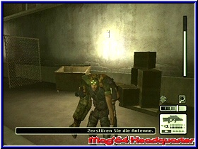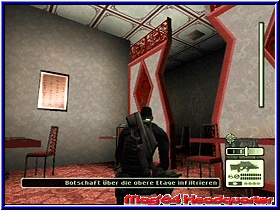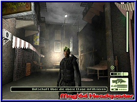 Wer seine toten oder bewußtlosen „Hinterlassenschaften“ nicht beiseite schafft, riskiert neuen Ärger. Werden Leichen oder Verletzte gefunden, nervt die Alarmsirene wieder. Wird dadurch zu oft Alarm ausgelöst, bricht man die Mission ab und ihr beginnt vom letzten Speicherort neu. Kann man einen Toten nicht beseitigen, weil an anderer Posten in der Nähe ist, kann manchmal ein makaberes Schauspiel verfolgen. So stößt der lebende den toten Posten mit dem Fuß in die Seite und fragt: „Hey, was ist los??“ Oder man hört nur den Ausruf:“Hier liegt ja einer, was´n hier los?“. Auch animierte Gimicks laden oft zum schmunzeln ein, wenn sich ein Posten ganz versonnen im Schritt oder Hintern kratzt. Ein besonderes Highlight ist das greifen von Personen. Gelangt man dicht hinter die Zielperson, kann man sie am Hals fassen und mit der Waffe bedrohen. Dadurch erlangt man Zutritt zu Räumen, die mit einem Netzhautscanner gesichert sind. nach getaner Pflicht erlöst man seinen Gefangenen, durch einen wuchtigen Schlag auf den Hinterkopf. Natürlich kann man auch diese Geisel als Schutzschild verwenden. Später werden aber die Posten nicht mehr auf die Geisel schießen, sondern bieten euch Aufgabe an. Dumm nur für ihn, das ihr eure Waffe weiterhin voll einsetzen könnt und er zum Ziel degradiert wird. Eile ist in diesem Spiel verpönt. Bevor man jede Tür achtlos aufreißt um zu sehen, was dahinter los ist, sollte man sich die Zeit nehmen und seine flexible Optik einsetzen. Damit begrenzt man die Überaschungen. Achtet auf eure Gesundheitsleiste rechts außen. Haltet Ausschau nach Health Päckchen, die ihr mitnehmen könnt und bei Bedarf verwendet. Auch Munition ist nicht unendlich vorhanden. Diese finden wir aber wesentlich seltener als Gesundheitspakete Grafisch liefert man uns ein sauberes Spiel mit guten Bewegungsanimationen und glatten Texturen. Die Lokations sind zwar auf begrenzte Orte festgelegt (Botschaft, Ölplattform), doch kann man sich relativ frei bewegen. Die Sprachausgabe ist deutlich und man hat auch einen leichten russischen Akzent mit eingegliedert, so das die Wachen an ihrer Nationalität erkennbar sind. Bei den Chinesen hat mich das gesprochene „R“ überrascht, das die das beherrschen :-) Bei Splinter Cell braucht man die typischen Agentenfähigkeiten, Ausdauer, Geduld und Gespür für die Situation und keinen schnellen Abzugsfinger. Was sich auch auf die Spieldauer niederschlägt. Es bleibt ein Spiel, welches fesselt und auch nervt, aber beides in einem ausgewogenem Verhältnis. |